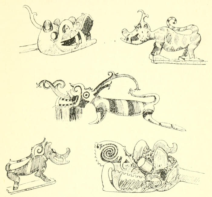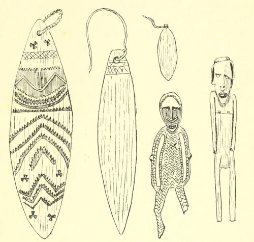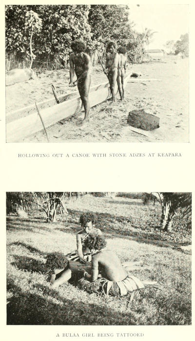 | Leave Murray Island in the Nieue—Daru—Arrive at Saguane—Mission-work—Visit Iasa—Long clan houses—Totems and totemistic customs—Bull-roarers and human effigies as garden charms and during initiation ceremonies—Head-hunting—Stone implements—Origin of Man—Origin of Fire—Primitive dwellings at Old Mawatta—Shell hoe—Katau or Mawatta—Election of a chief—A love story—Dances—Bamboo beheading-knife | Page 95-116 |