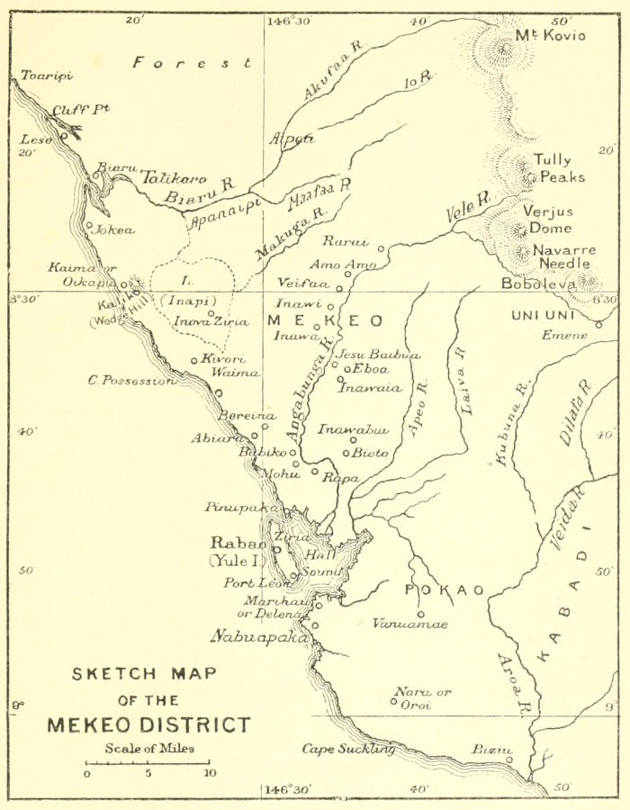 Very pleasing is it to record the brotherly kindness that we received at the hands of the Sacred Heart Mission. None of our party belonged to their Communion, but from the Archbishop to the lowliest Brother we received nothing but the friendliest treatment. Nor would we omit our thanks to the good Sisters for the cheerful way in which they undertook the increased cares of catering which our presence necessitated. The insight which we gained into the ethnography of the[xiv] Mekeo District is solely due to the good offices of the various members of the Sacred Heart Mission.