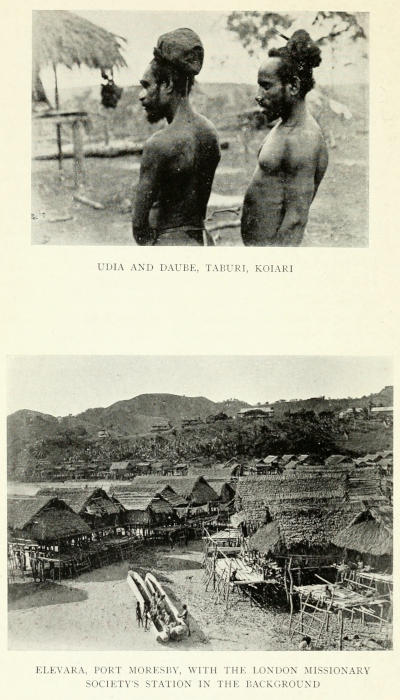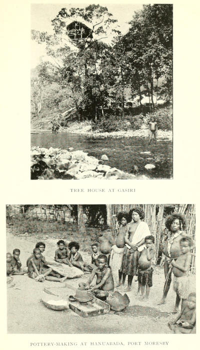 | Port Moresby—Ride inland—Vegetation—View from the top of Warirata—The Taburi village of Atsiamakara—The Koiari—Tree houses—The Agi chief—Contrasts—A lantern show—The mountaineers—Tribal warfare—The pottery trade of Port Moresby—The Koitapu and the Motu—Gunboats | Page 235-251[xx] |