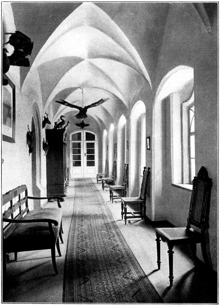 Unter dem blauseidigen Himmel eines goldigen Herbstsonntags fuhr ich von Flöha aus das herrliche Zschopautal aufwärts. Noch nie hatte ich es in solcher Pracht gesehen. Der reiche Laubschmuck dieses Sommers (1924) hatte zwar schon sein Sterbekleid angelegt, aber es sprühte Licht und Farben, als ob der Tod in das Leben umgebogen werden könnte. Und was so siegprangend in die reine Luft leuchtete, das verdoppelte sich noch hie und da durch Spiegelung in dem ruhigen klaren Wasser der Wehrteiche, zu denen der Fluß sich überall anstaut, wo ein Mühlgraben abzweigt. Unten auf den smaragdgrünen Wiesen weideten buntscheckige Rinder und oben über dem golddurchwirkten Walde glänzten die kraftvoll durchgebildeten Ecktürme und Dächer der alles beherrschenden Augustusburg. Es folgt das behaglich um die altersgraue Feste Wildeck geschmiegte Städtchen Zschopau. Bald danach verkünden höher ansteigende schwarze Waldberge das Nahen der sagenumwobenen Burg Scharfenstein, der Perle des oberen Zschopautales – und nun liegt sie selbst vor mir, auf felsiger Anhöhe, vom Sonnengold umflossen, und bietet mir heute wieder fast denselben reizvollen Anblick wie vor sechs Jahren, als ich sie zuletzt sah. Aber zu genauerem Vergleich ist zunächst keine Zeit; denn im[317] Durchgang des Bahnhofs begrüßt mich der Burgherr Graf Alexander von Einsiedel, und im nächsten Augenblick trägt uns der Kraftwagen mit kaum glaublicher Tatkraft den steilen Felsen empor in den Burghof. Die breite Steintreppe führt uns in ein großes, helles Empfangszimmer mit schönem Blick in eine sich nach rechts hin erstreckende, mit Kreuzgewölben überdeckte Galerie. Hier wird der Burgherr auf kurze Zeit abgerufen – und nun erst komme ich dazu, meine abgebrochene Gedankenkette über das Wie und Wo wieder aufzunehmen.