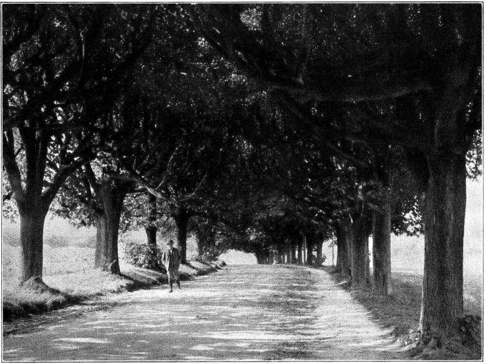 Auch die sächsische Lausitz kann ein altes Schloß aufweisen, das schwer bedroht in seinem Bestand erscheint. Wer von Herrnhut kommend, die große Staatsstraße nach Zittau zu entlang wandert, dem wird ein Stündchen hinter Herrnhut eine reizvolle Baumallee auffallen, die zur Linken hinüber zum Dorfe Großhennersdorf führt. Verlockt ihn der dunkle Laubengang der seltsam verschlungenen Bäume (Abb. 2) zum Abschweifen vom Wege, so kommt er bald beim alten, stattlichen Kretscham des Dorfes an, wird aber zunächst vergeblich um sich schauen, was eigentlich das Hauptziel der stolzen Baumpromenade gewesen sein mag. Schließlich wird er, nach einigem hin und her, auf ein altes Wasserschloß stoßen, daß unter[341] Bäumen versteckt, umgeben von ausgetrockneten Wassergräben, umzogen von einer verfallenen Brüstungsmauer stumm und verlassen dahinträumt. Der Stumpf eines verwitterten Turmes, dessen dereinstige, lustige Barockkugelhaube den Stürmen seit langem zum Opfer fiel, bewacht den einzigen Zugang, den wir über eine alte Steinbrücke hinweg erreichen (Abb. 3).