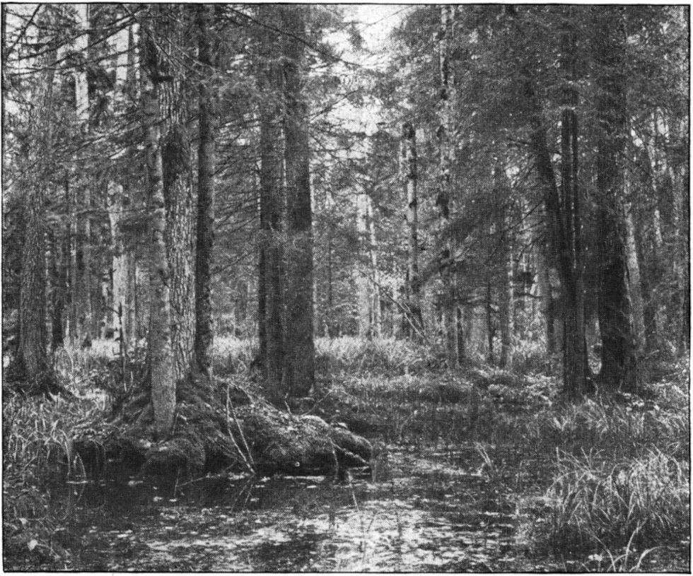 Das Waldgebiet von Bialowies, wenn ich hier noch einige wenige Worte darüber sagen darf, bedeckt eine Fläche von gegen dreizehnhundert Quadratkilometern und kommt damit an Größe fast dem ehemaligen Herzogtum Altenburg gleich. Es bildet ein einziges großes, zusammenhängendes Waldmeer, das im Norden, Westen und Süden größtenteils in Wiesen- und Feldlandschaften übergeht, im Osten aber in feuchte Niederungen, mit Erlen- und krüppelhaften Fichtenbeständen oder in weite baumlose Sumpfflächen ausläuft, die weiter östlich in den Pripjetsümpfen ihre Fortsetzung finden. Forstlich setzt sich der Wald zusammen aus der Kiefer als den verbreitetsten Waldbaum überhaupt und der meist sekundär auftretenden Fichte sowie einer Anzahl Laubholzarten: Hainbuche, Eiche, Winterlinde, Spitzahorn, Esche, Ulme, Birke, Aspe und Schwarzerle. Diese Bäume bringen es zu ganz erstaunlichen Wuchsleistungen und überraschen den Besucher des Waldes durch ihre gewaltigen Höhen ebensosehr wie durch die Schönheit ihrer Wuchsformen. Die größte von uns gemessene Fichte beispielsweise war zweiundfünfzig Meter lang, Höhen von fünfundvierzig bis sechsundvierzig Meter bei Stammstärken von einem Meter und darüber waren etwas ganz normales. Kiefern maß ich bis zu achtunddreißig Meter, Laubbäume, wie Eichen, Linden, Eschen usw. bis zu fünfunddreißig Meter und darüber und selbst Birken und Aspen blieben in ihrem Höhenwachstum nicht hinter diesen Maßen zurück. Überaus reizvoll war die große Mannigfaltigkeit und der bunte Wechsel der Bestandsformen. Üppigster Laubwald, in dem bald durch das Vorherrschen der Hainbuche ein ganz eigenartig wirkendes grünes Halbdunkel herrschte, das dem Photographen nur zu oft seine launischen Tücken offenbarte, und der an anderen Stellen wieder durch stärkeres Auftreten der Eiche und dem Einstellen der Kiefer ein lichterer wurde und dann eine nicht nur blütenreiche, sondern ganz besonders auch eine farbenbunte Bodenflora im Gefolge hatte, wechselte ab mit dunklen Fichtenbeständen, in denen die grüngoldenen Moospolster am Boden oft eine so eigenartige Wechselwirkung zu dem Silbergrau der flechtenüberzogenen Stämme bildeten; nassestem Bruchwald, in dem bald Fichten und Erlen überwogen, bald aber auch wieder andere Laubhölzer die Erle verdrängten[379] oder die Fichte zur allein herrschenden Holzart wurde, und in dem das Eindringen oft überaus schwierig war, ja manchesmal fast zur Unmöglichkeit wurde, schloß sich trockenster Kiefernwald auf Sandboden an, in dem eingesprengte, weißstämmige Birken und unterständige Fichten nicht selten die malerischsten Wirkungen hervorbrachten. Dazwischen hinein schoben sich von Sauergräsern bestandene Moorwiesen, an deren Rändern Fichten und Erlen, Kiefern und Birken kümmerten, oder eigenartig wirkende Waldmoore, deren wachsende Sphagnumpolster mit dem Sumpfporst und der braunroten Moosbeere die beginnende Hochmoorbildung verrieten. Meistens fehlten zwischen den einzelnen Bestandsformen alle vermittelnden Übergänge; ein nur geringer, dem Auge gar nicht auffallender Bodenunterschied und der dadurch bedingte Wechsel in der Höhe des Grundwasserstandes ließen die eine Form fast immer unvermittelt und schroff aus der anderen hervorgehen. Begegnete man dann in diesem Wald dem Wisent, so konnte man sich in jene entlegene Zeiten zurückversetzt wähnen, in denen auch noch der deutsche Wald das gleiche Aussehen besaß und in seinem dämmernden Grün ähnliche Urwaldrecken ihr Wesen trieben. –