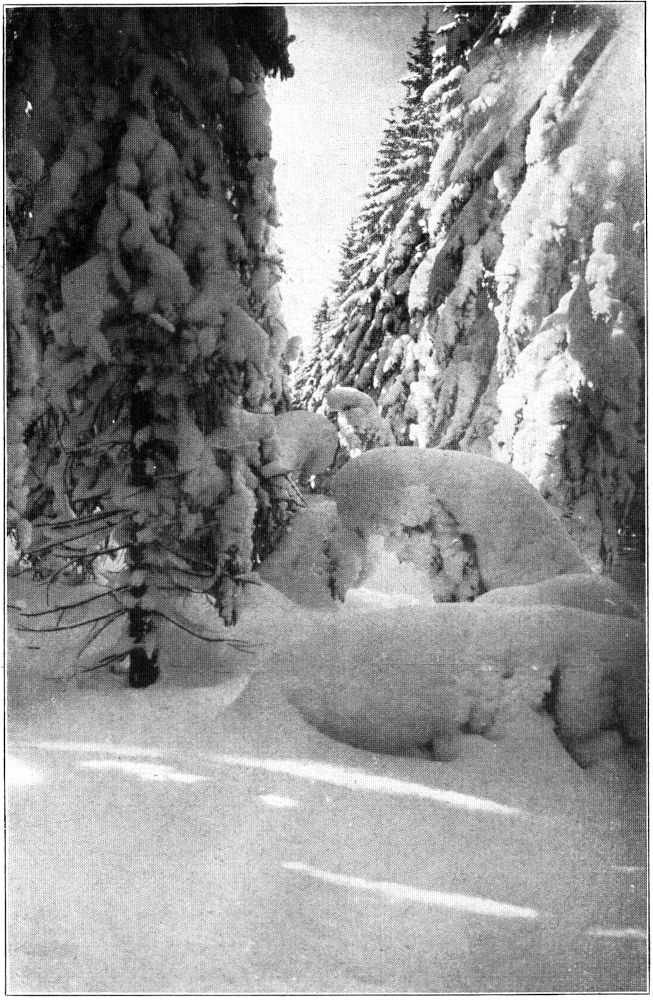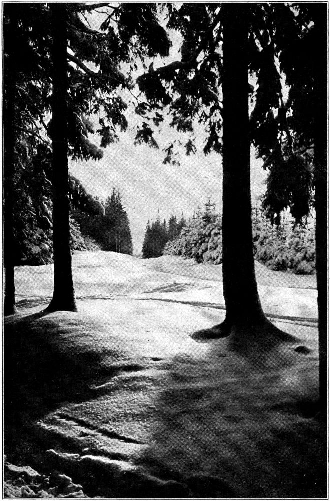 Heut’ freilich ist alles in einfache Formen und einheitliche Farben gegossen. Wuchtig hebt sich Terrasse über Terrasse, reiht sich Kuppe an Kuppe (Abb. 2). Alle Einzelheiten verwischt, alles Kleinliche getilgt, die ganze weite Winterwelt in blendender Größe als Einheit vor uns hingestellt.