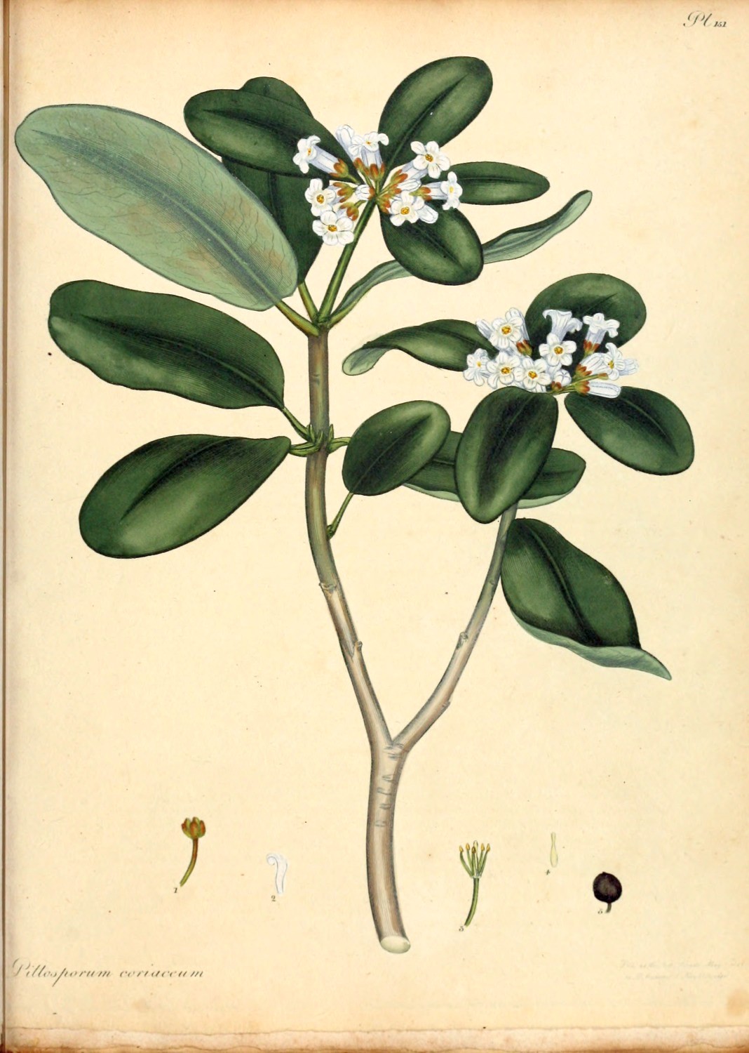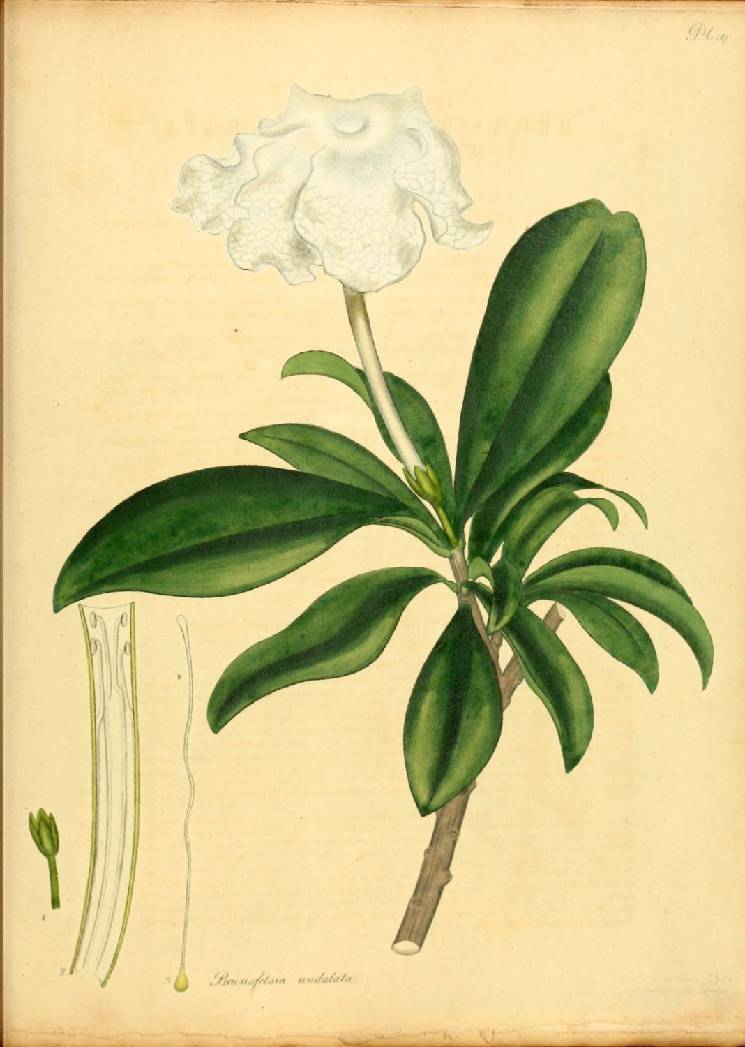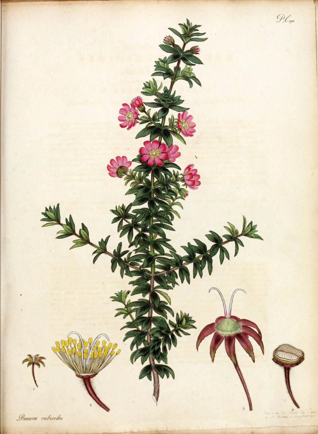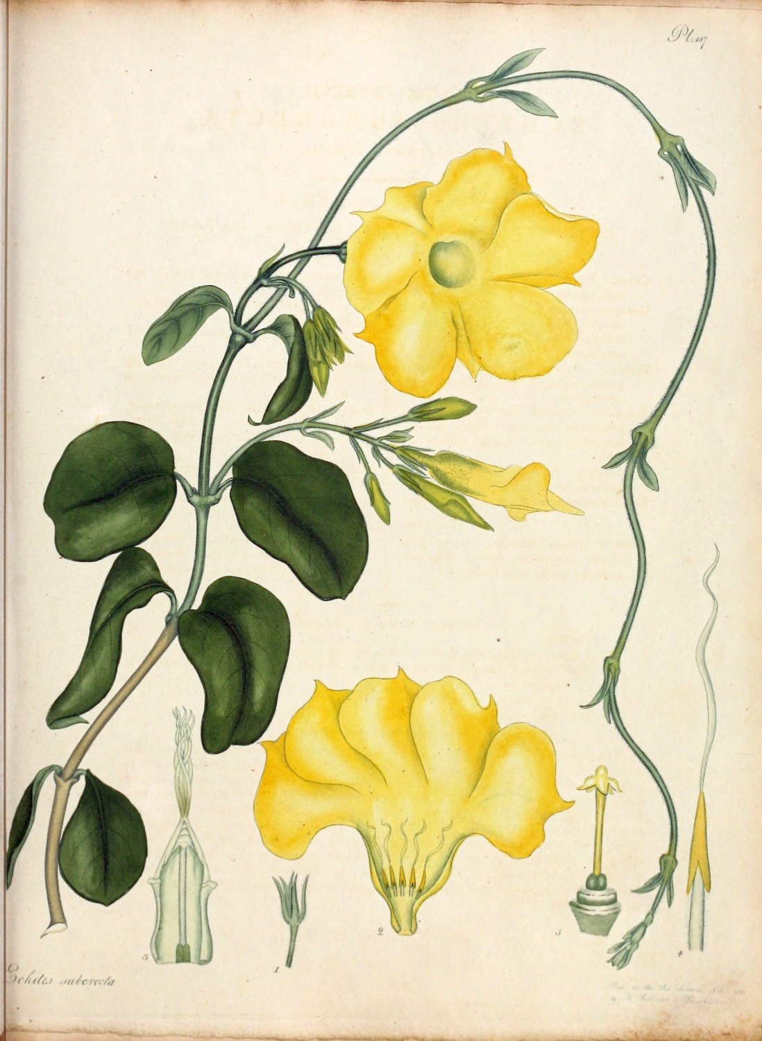 This species of Hillia was first introduced to our gardens in the year 1789, from the Island of Barbadoes, sent in plants, by Mr. J. Elcock, to Messrs. Lee and Kennedy, Hammersmith. Originally this shrub was specifically termed, parasitica by professor Jacquin, when he first formed, and titled the Genus, after Dr. J. Hill, of voluminous memory; from a supposition that it was to be found growing, only, upon some other plant; a circumstance, which being denied by Swartz, he has altered it to longiflora. We have followed the latter name that ours may go in unison with the author of the last Species plantarum now publishing by Willdenow, as well as professor Martyn, who in his edition of Miller’s Dictionary has followed Swartz; they appearing to be the most accurate, as well as the most read and followed of any modern Botanical authorities. It is a tender hot-house plant, strikes easily from cuttings, thrives in rich mould and flowers about the end of February. To the Right Hon. Lord Viscount Valentia we are indebted, for the specimen from which our figure was taken, sent from his Lordship’s famed collection at Arley near Bewdley, Staffordshire; where, we believe, it has flowered for the first time in England.[Pg 5]