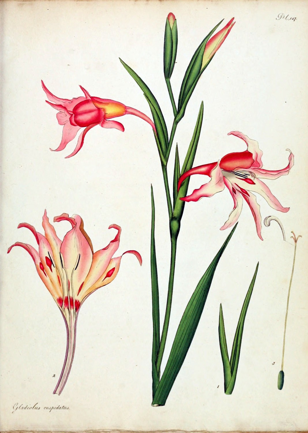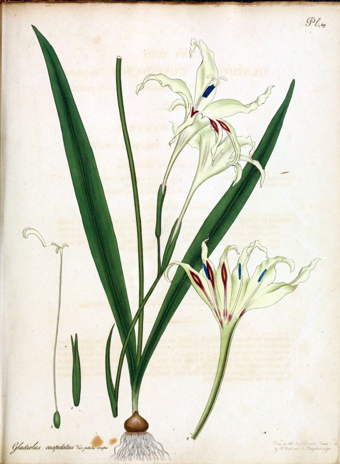 | 219 | Gladiolus cuspidatus, Var. petalis crispis | Spear-spotted Gladiolus, V. with crisped petals | G. H. | Bulb. | May. | |