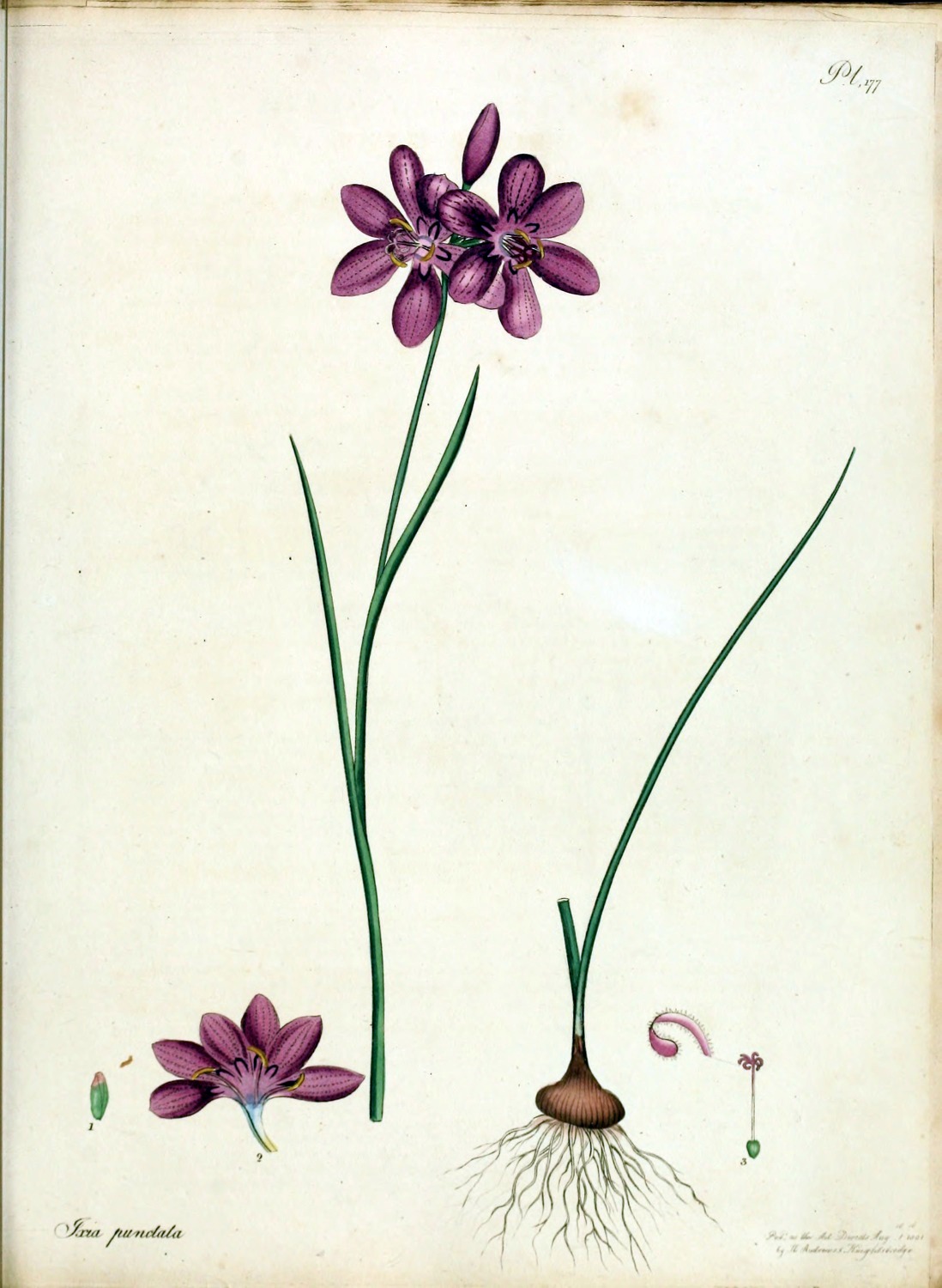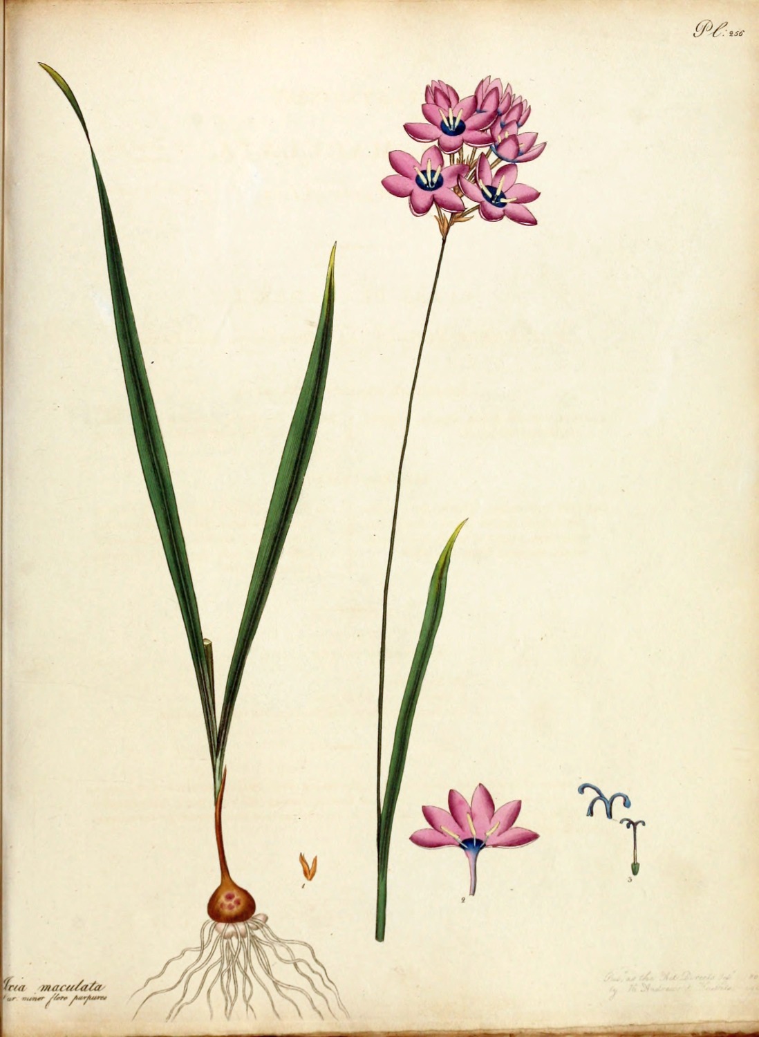 | 256 | Ixia maculata, Var. minor, flo. purpureo | Spotted-flowered Ixia, Small Var. purp. flo. | G. H. | Bulb. | June. | |