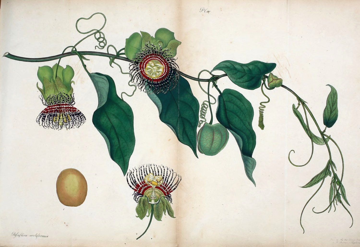 | Plate | 217 | Passiflora maliformis | Apple-fruited Passion-flower | H. H. | Shrub. | July. |
