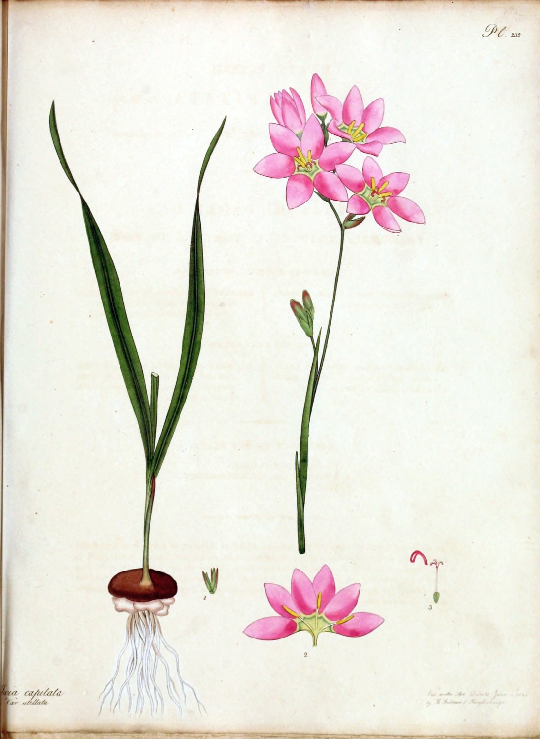 | 232 | Ixia capitata, Var. stellata | Bunch-flowering Ixia, Star-flowered Var. | G. H. | Bulb. | May. | |
