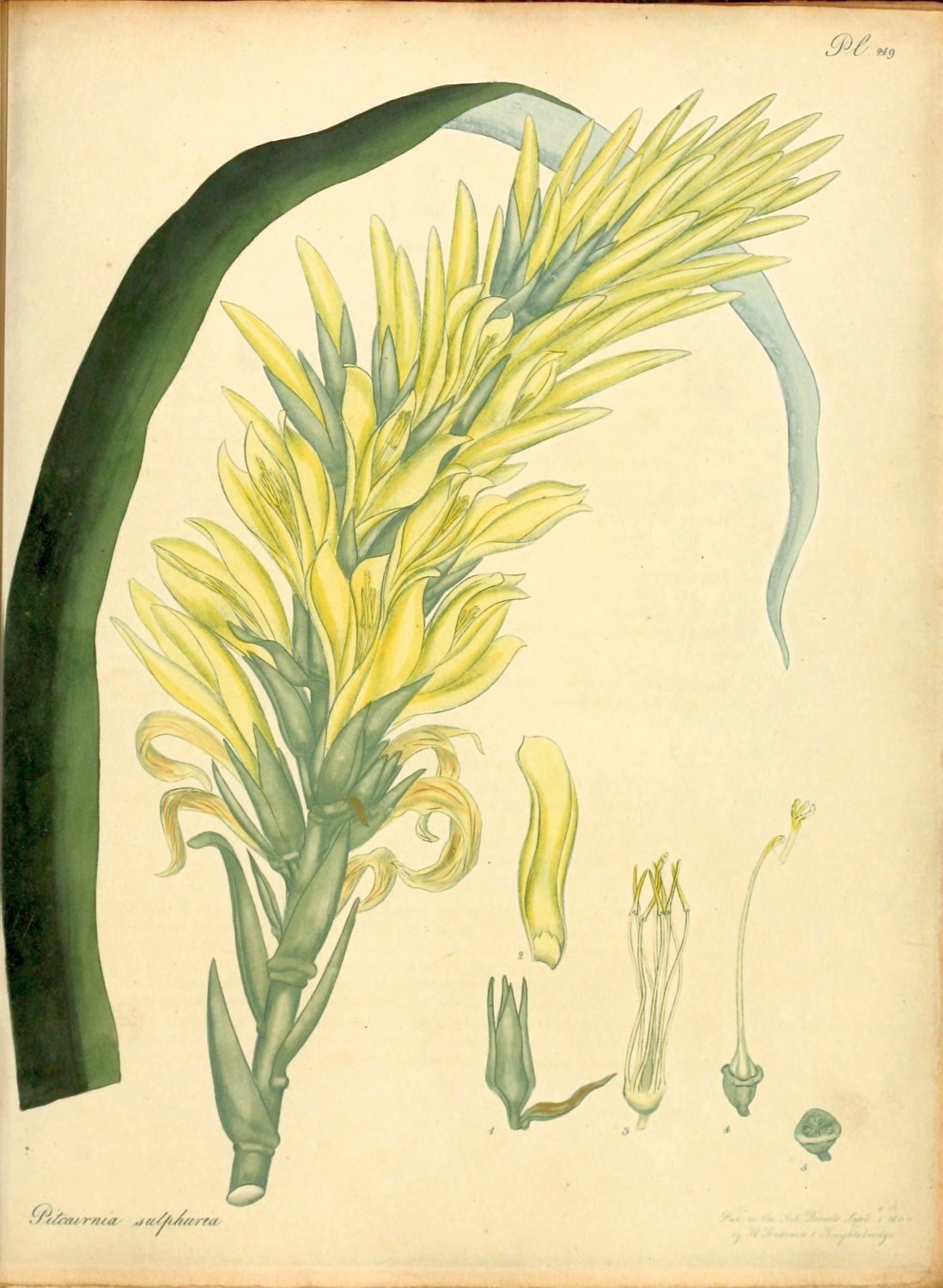 | 249 | Pitcairnia sulphurea | Sulphur-coloured Pitcairnia | H. H. | Herb. | April. | |