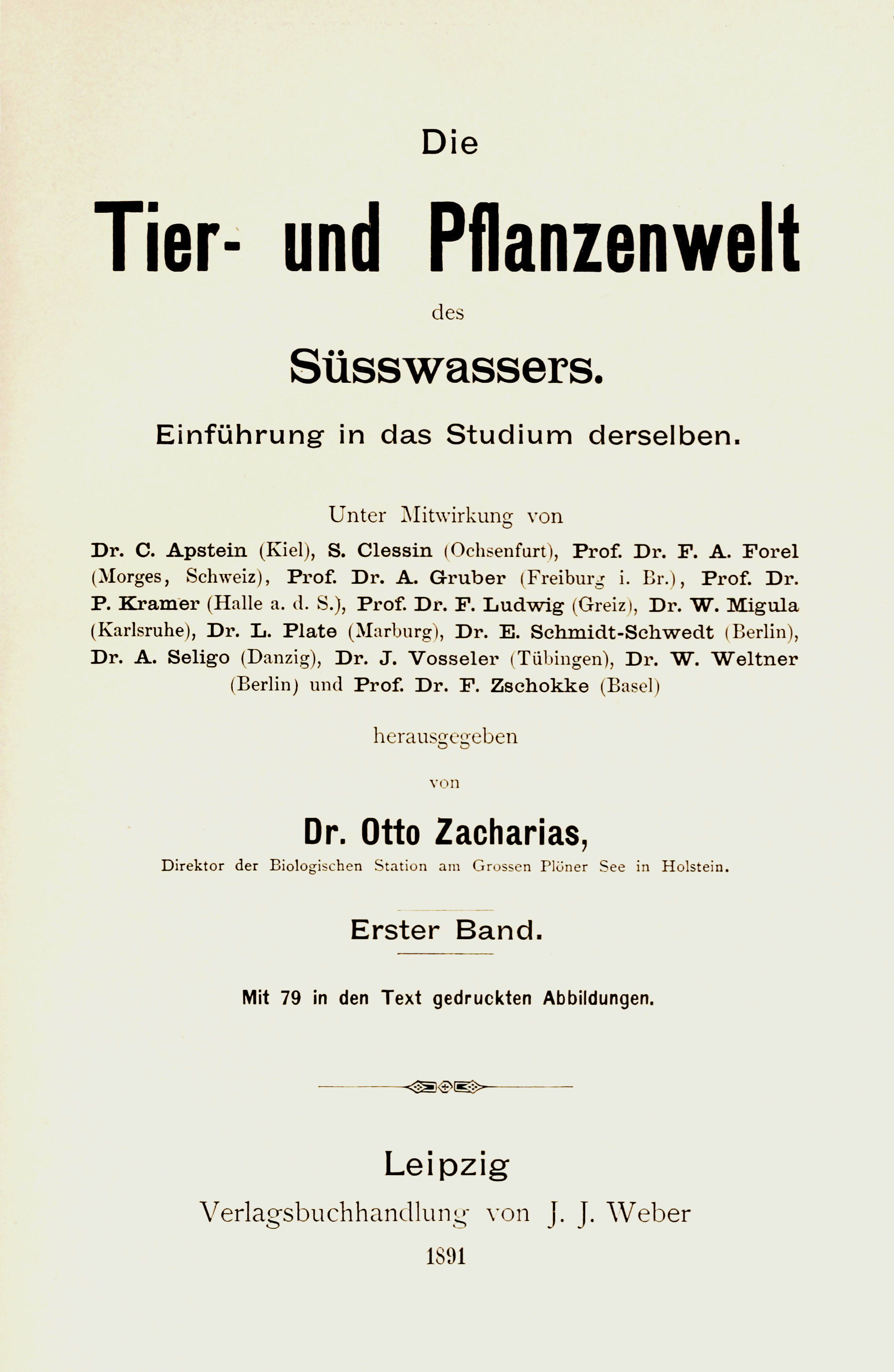 Unser Buch wendet sich vorwiegend an Solche, welche sich wissenschaftlich-praktisch und nicht etwa bloss litterarisch mit der pflanzlichen und tierischen Bewohnerschaft der Seen beschäftigen wollen. So geartete Leser und Beurteiler der nachfolgenden Kapitel werden auch abzuschätzen vermögen, dass die Herausgabe eines nur einigermassen umfassenden Werkes über die Flora und Fauna des Süsswassers mit mannigfachen Schwierigkeiten verbunden war, unter denen die Gewinnung von geeigneten Mitarbeitern obenan stand. In letzterer Hinsicht sind aber meine Bemühungen erfolgreich gewesen.