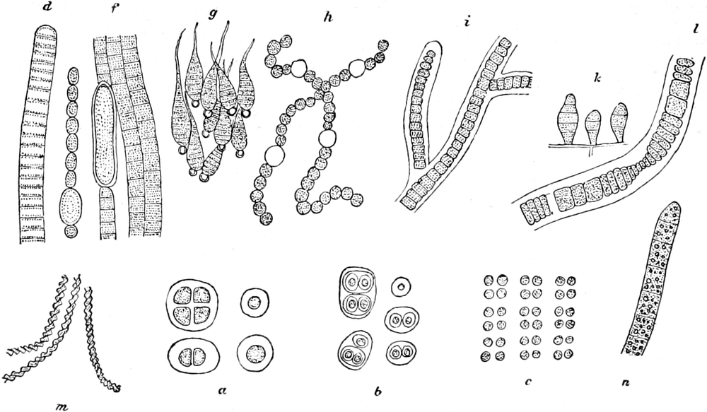 — Orientierung über die 5 Hauptgruppen: 1. Spaltalgen (Schizophyceae),