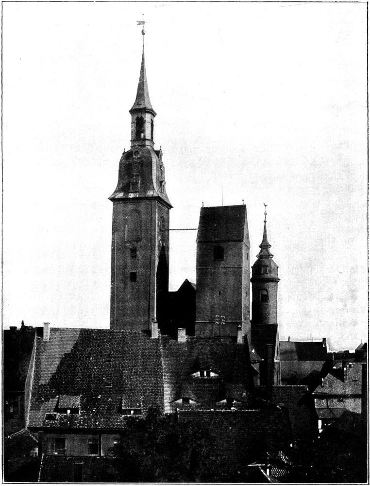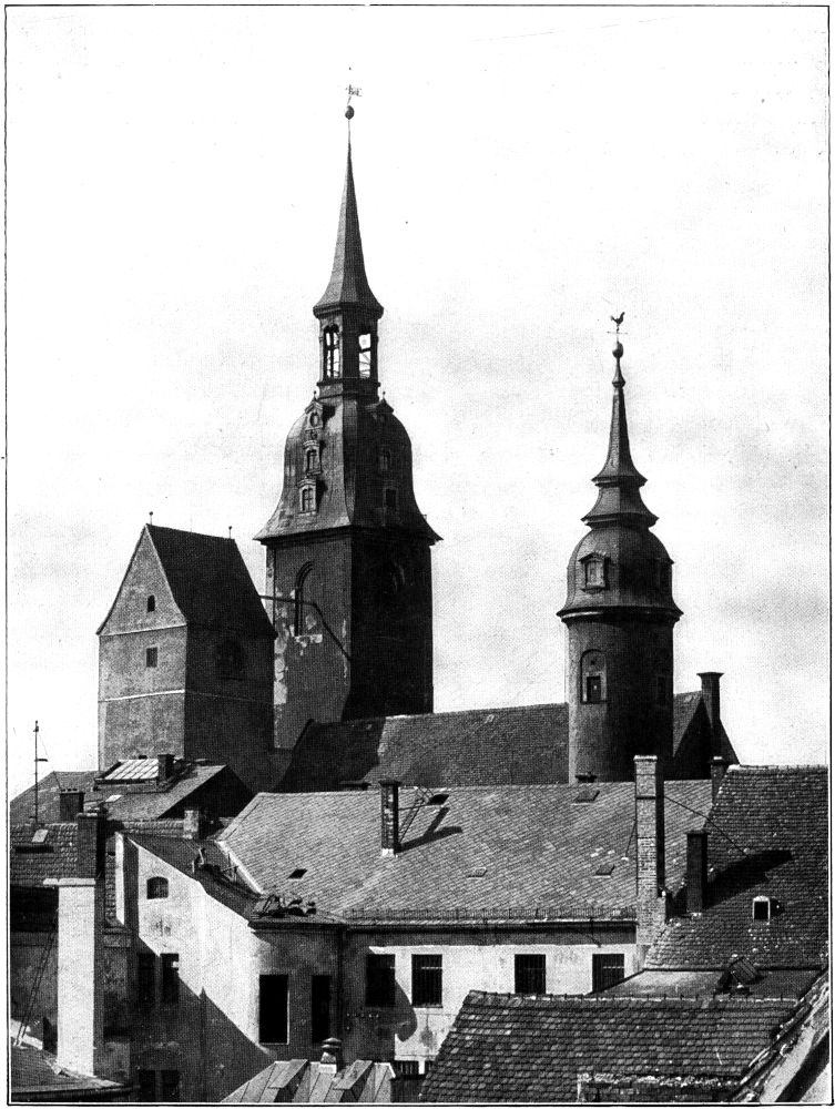 Hoch über alle Dächer der alten Bergstadt recken sich die Petritürme zum Himmel und schauen weit in die Ferne. (Abb. 1.) Weit liegen Wiesen und Felder und im immergrünen Kranze die Wälder gebreitet. Blinkende Teiche blitzen auf mit silbernem Spiegel und die Halden des alten Bergbaues grüßen herauf als Zeugen vergangener Bergherrlichkeit und harter Arbeit hundert zäher Bergmannsgeschlechter.