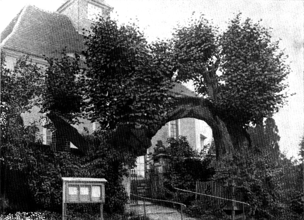 An windgeschützter Stelle wurde aus dem Rucksack ein »Promenadendiner« eingenommen, dann gings weiter in Richtung Koselitz. Ein Schnee- und Regenschauer erinnerte uns daran, daß der April noch am Ruder sei. Es war aber eine letzte, schüchterne Mahnung, denn ein wundervoller Nachmittag war uns noch beschieden. Allerhand boten uns noch die Koselitzer Teiche. Schwarz-, Rothals- und Haubentaucher, Bläßhühner, Stock-, Schell- und Tafelenten belebten die Wasserfläche. Die freudigste Überraschung bot uns aber der Neue Teich bei Frauenhain, als wir im Schilf Freund Adebar »herumstorchen« sahen. Als wir dann im Dorfwirtshause bei einem Schälchen »Heeßen« von den Strapazen der Wanderung uns erholten, da erfuhren wir, daß ein besetztes Storchnest im Dorfe vorhanden sei. Ein Besuch[419] bei ihm sollte den würdigen Abschluß des so erfolgreichen Tages bilden. Im Garten hinter der Scheune von Nummer einundvierzig steht es auf einer hohen Eiche. Drei mächtige Äste, die schräg emporwachsen, bilden eine vorzügliche Unterlage für den massigen Horst. Frau Adebar saß – wie es schien brütend – darin. Und während wir schauen und uns berichten lassen vom Besitzer des Grundstückes, daß das Nest seit vierzig bis fünfzig Jahren immer besetzt gewesen ist, da kommt auch der Gatte herangestrichen, fußt auf dem Nestrande und verflicht einen mitgebrachten Zweig ins Gewirr der schon vorhandenen.