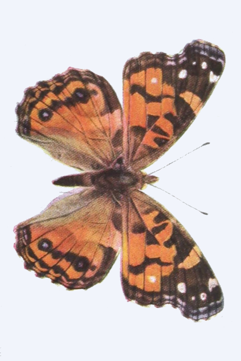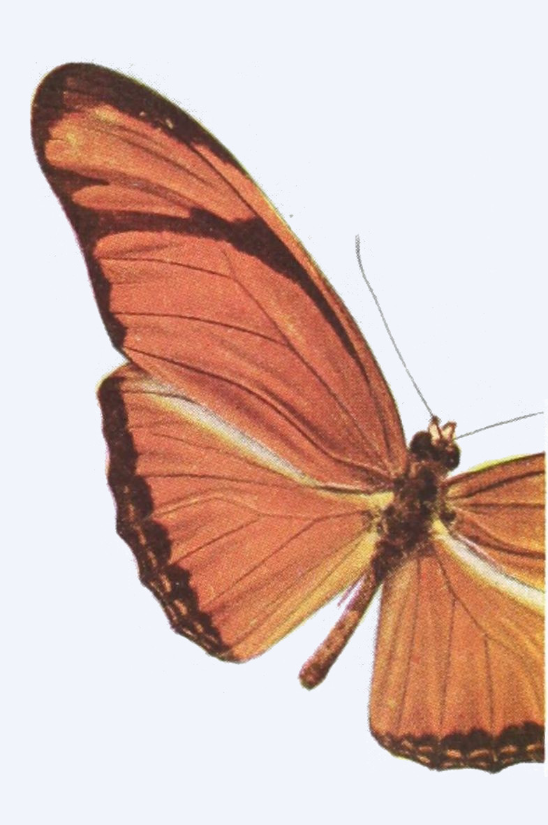 The most striking parts of butterflies are their wings, which in proportion to[17] the size of their bodies are usually very large, and which are remarkable for the beauty of the colors and the markings which they display both on the upper and on the under side.