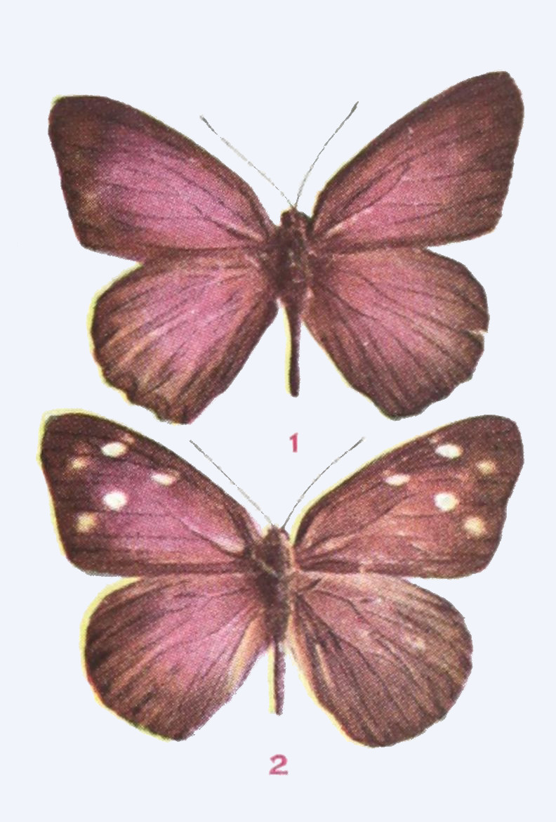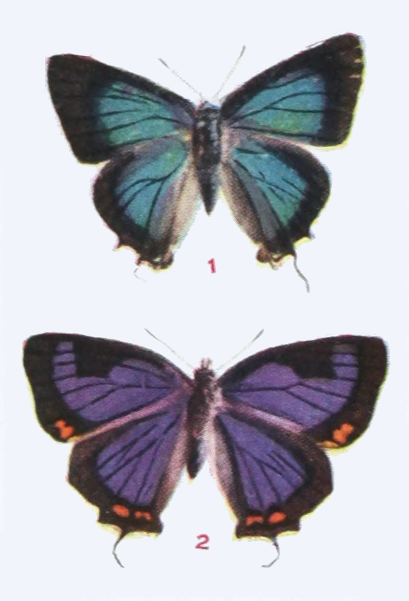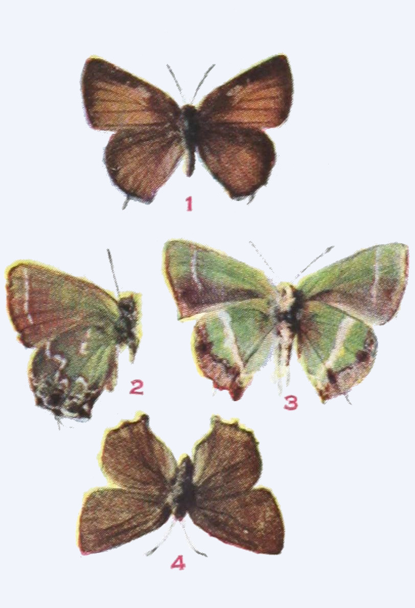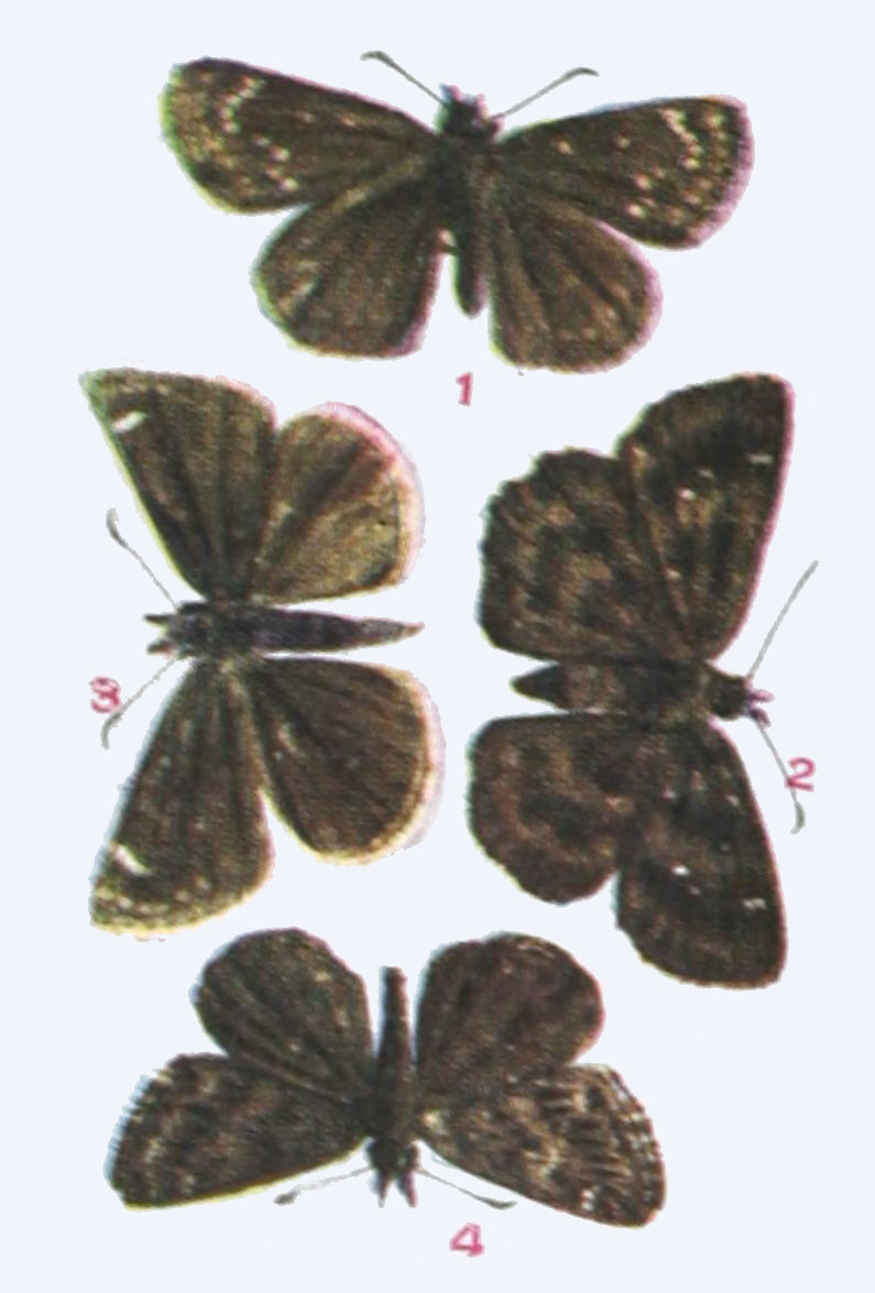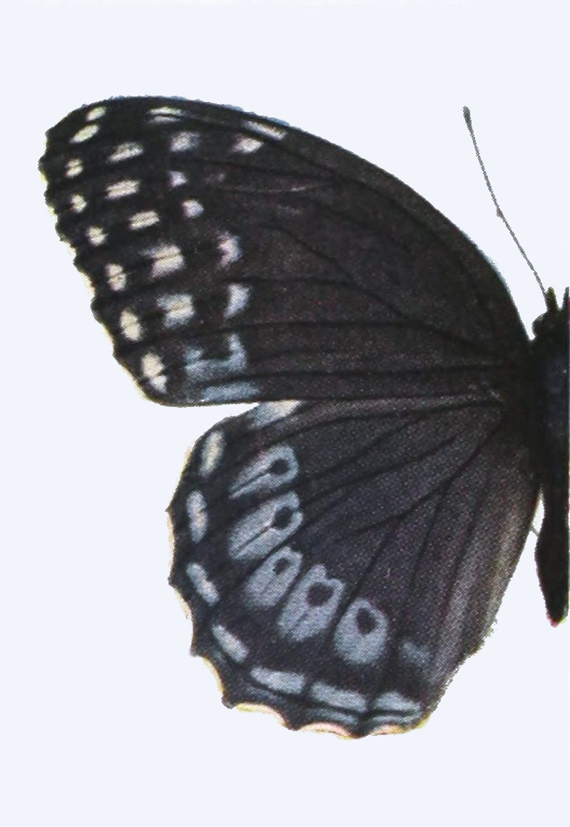 The upper side is well represented in our figure. On the under side the wings are a little paler, especially the hind wings, which on their outer half are dusted with gray, in certain lights having a bluish cast. Expanse 1.15-1.25 inch.