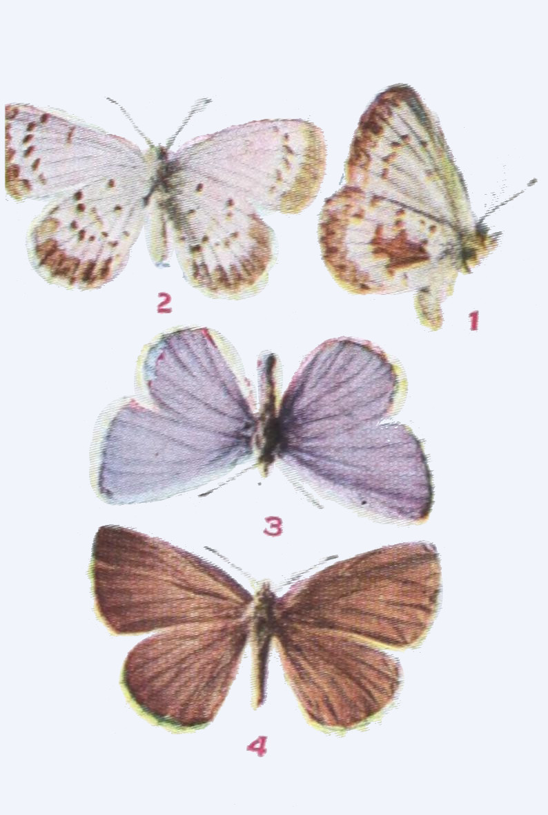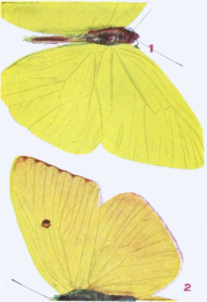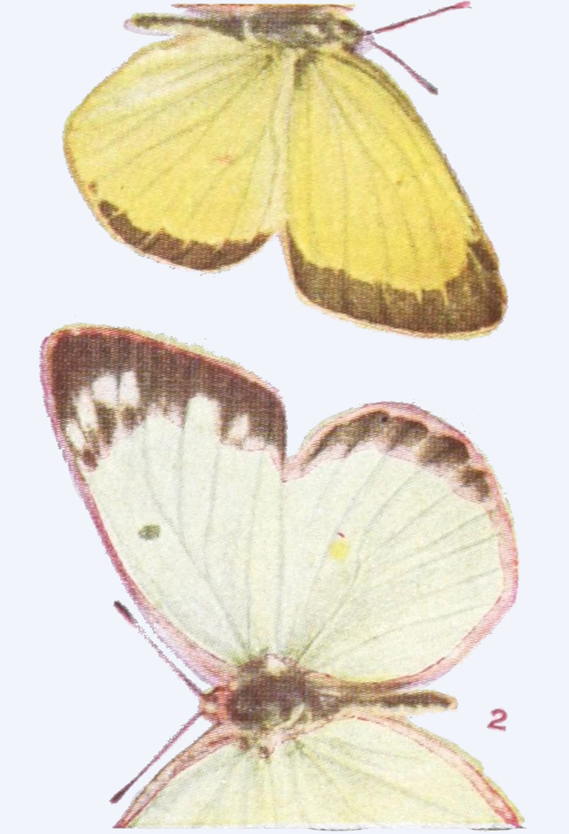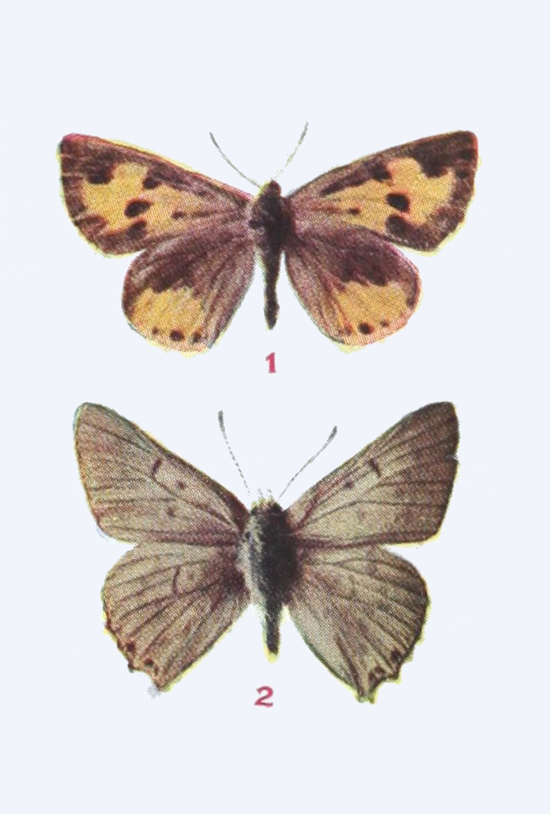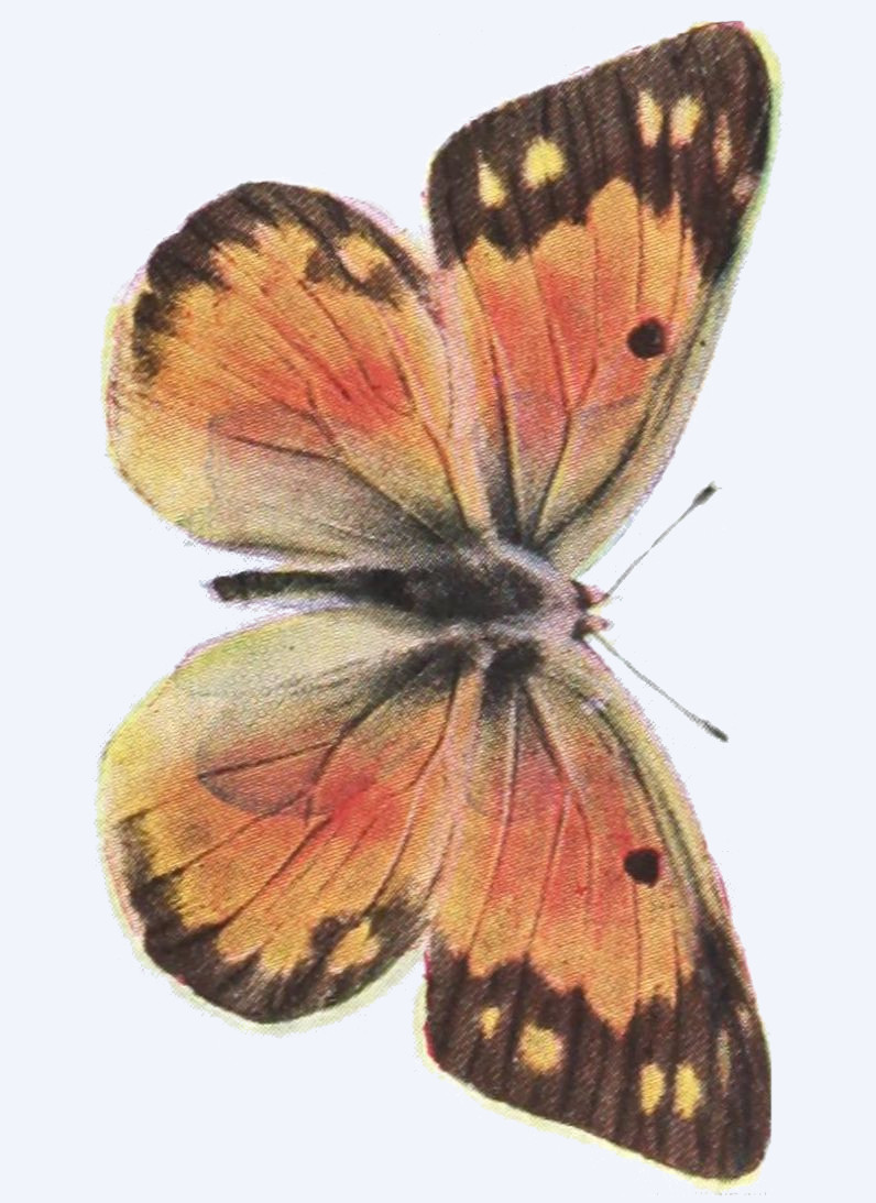 The time spent by the insect in the egg is generally short. The time passed in the larval state may be short or long. When butterflies hibernate, or pass the winter, as caterpillars, the time spent in this state is long, and especially in the case of those species which inhabit arctic regions. There are some butterflies which occur north of the Arctic Circle, and we have ascertained that these, because the summers are so short in the far north, pass two summers and the intervening winter in the larval condition, and another winter in the pupal stage, before they emerge and take wing. On the other hand, under more temperate conditions butterflies of[34] certain species may produce two or even three broods in a summer, and in subtropical or tropical lands there may be even more broods produced.