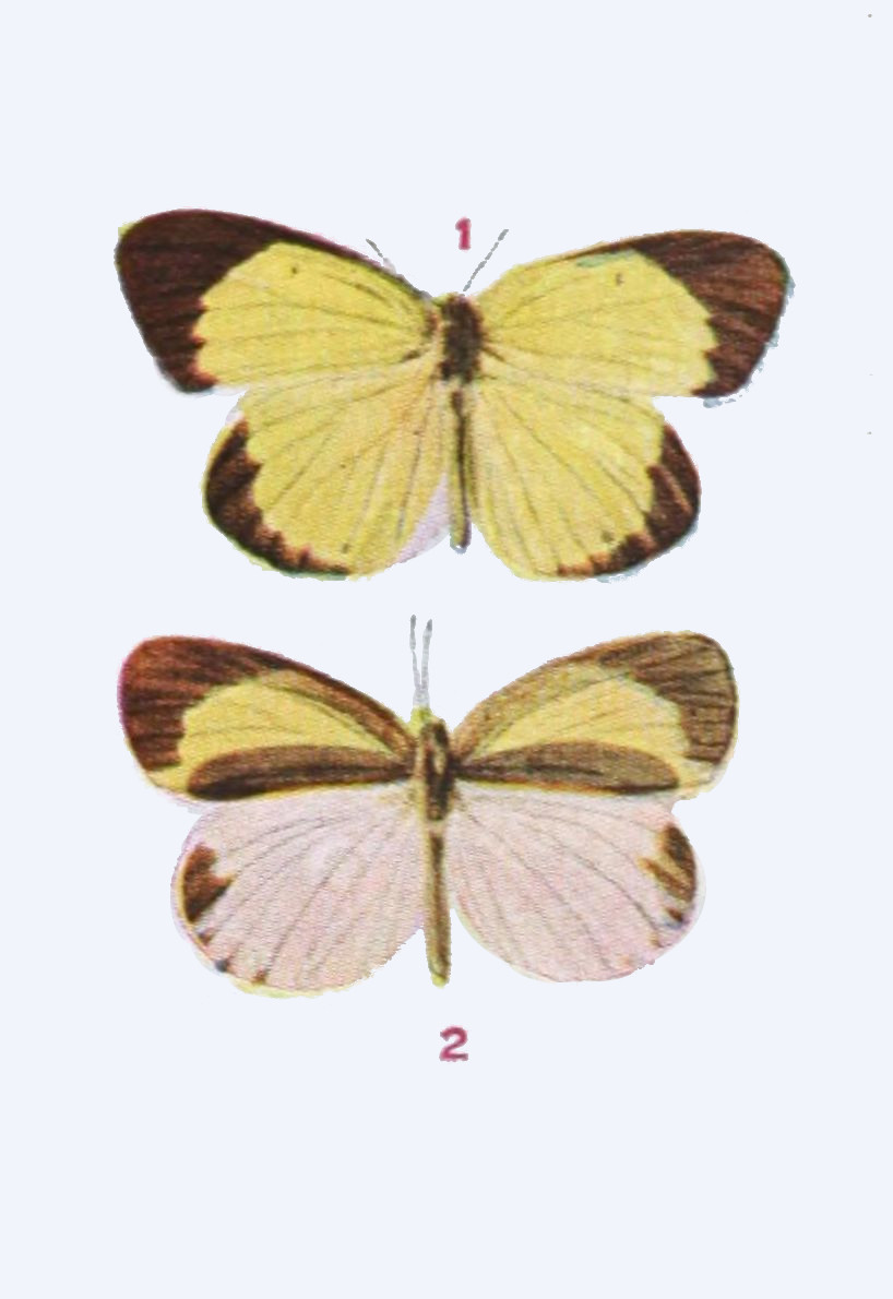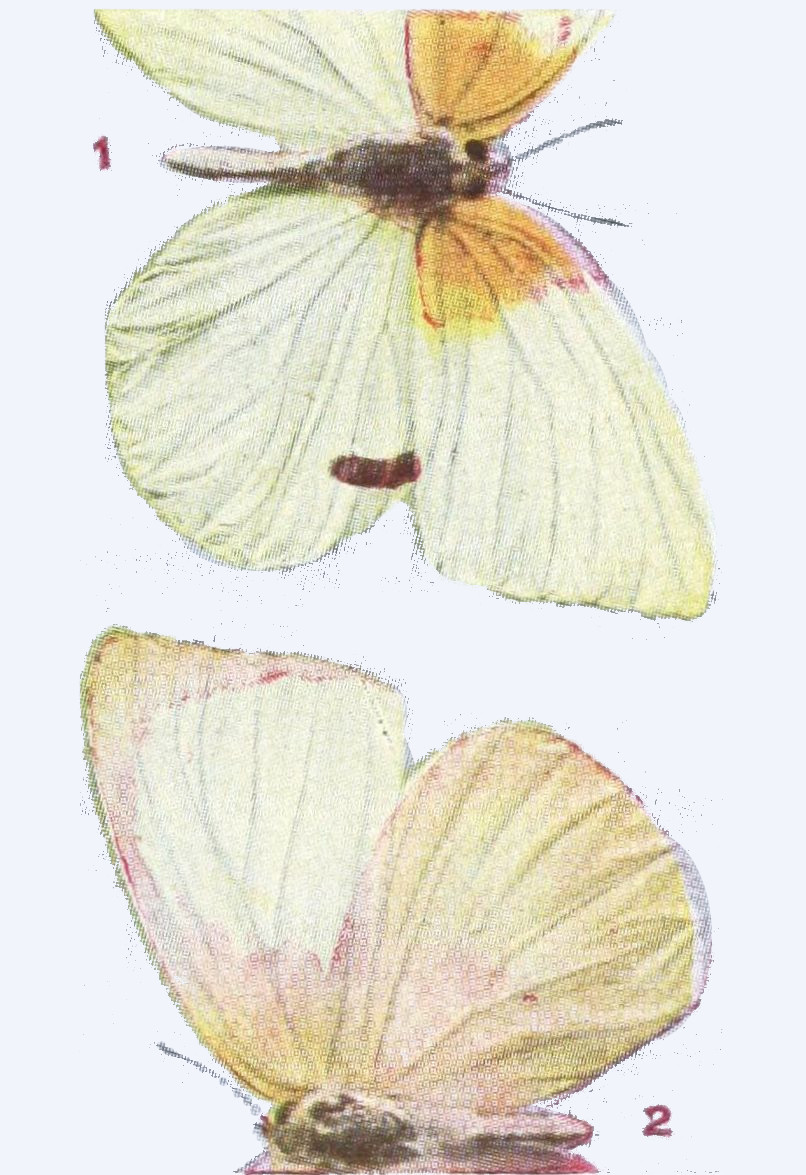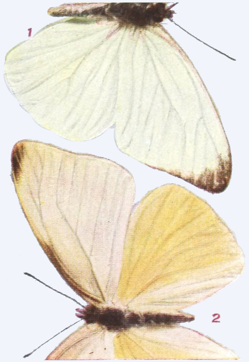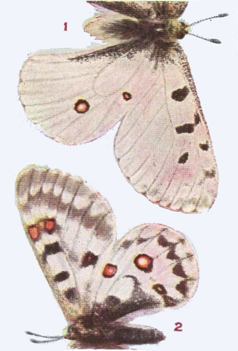 The time spent by the insect in the egg is generally short. The time passed in the larval state may be short or long. When butterflies hibernate, or pass the winter, as caterpillars, the time spent in this state is long, and especially in the case of those species which inhabit arctic regions. There are some butterflies which occur north of the Arctic Circle, and we have ascertained that these, because the summers are so short in the far north, pass two summers and the intervening winter in the larval condition, and another winter in the pupal stage, before they emerge and take wing. On the other hand, under more temperate conditions butterflies of[34] certain species may produce two or even three broods in a summer, and in subtropical or tropical lands there may be even more broods produced.