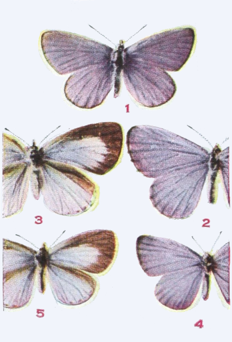 Very closely related to the following species from which it may be distinguished by its somewhat smaller size and the presence of the heavier dark markings at the apex of the fore wings above. Expanse 1.25-1.50 inch.