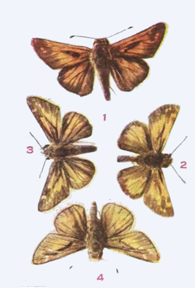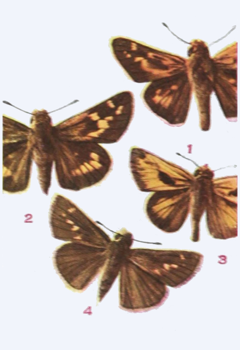 (3) Atrytone hobomok (Harris), Plate CXLVIII, Fig. 2, ♂; variety pocohontas Scudder, Plate CXLVIII, Fig. 3, ♀ (The Hobomok Skipper).