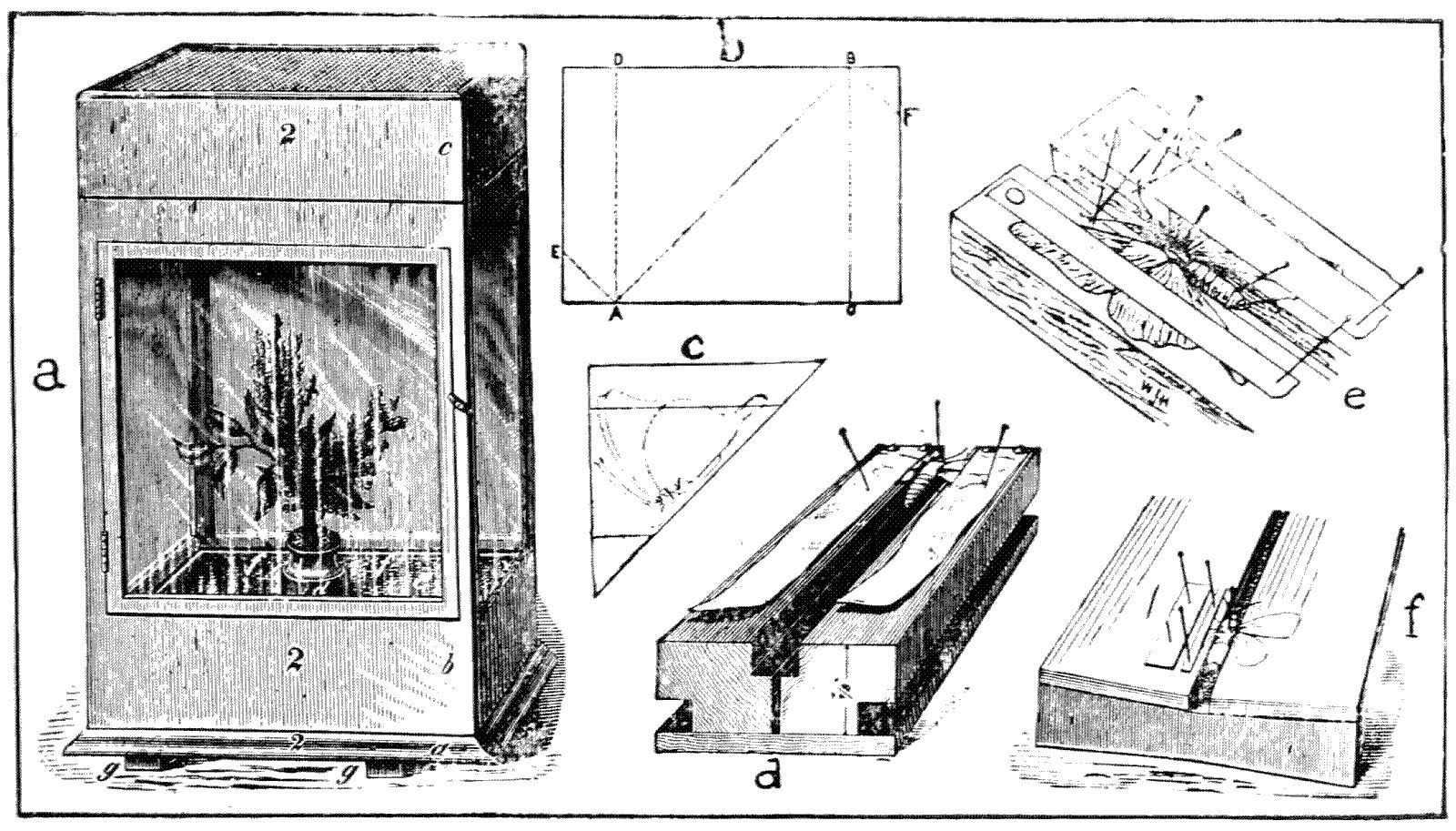 | Fig. e. | Chrysalis of Papilio philenor, held by button and girdle of silk. |