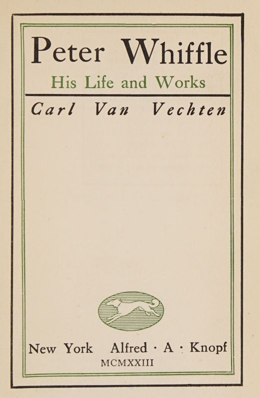 So few people were acquainted with Peter Whiffle that the announcement, on that page of the New York Times consecrated to wedding, birth, and obituary notices, of his death in New York on December 15, 1919, awakened no comment. Those of my friends who knew something of the relationship between Peter and myself, probably did not see the slender paragraph at all. At any rate none of them mentioned it, save, of course, Edith Dale, whose interest, in a sense, was as special as my own. Her loss was not so personal, however, nor her grief so deep. It was strange and curious to remember that however infrequently we had met, and the chronicle which follows will give evidence of the comparative infrequency of these meetings, yet some indestructible bond, a firm determining girdle of intimate understanding, over which Time and Space had no power, held us together. I had become to Peter something of a necessity, in that through me he found the proper outlet for his artistic explosions. I was present, indeed, at the bombing of more than one discarded theory. It was under the spell of such apparently trivial and external matters that our friendship developed and, while my own interests often flew in other directions, Peter certainly occupied as important a place in my heart as I did in his, probably, in some respects, more important. Nevertheless, when I received a notification from his lawyer that I had been mentioned in Peter's will, I was considerably astonished. My astonishment increased when I was informed of the nature of the bequest. Peter Whiffle had appointed me to serve as his literary executor.