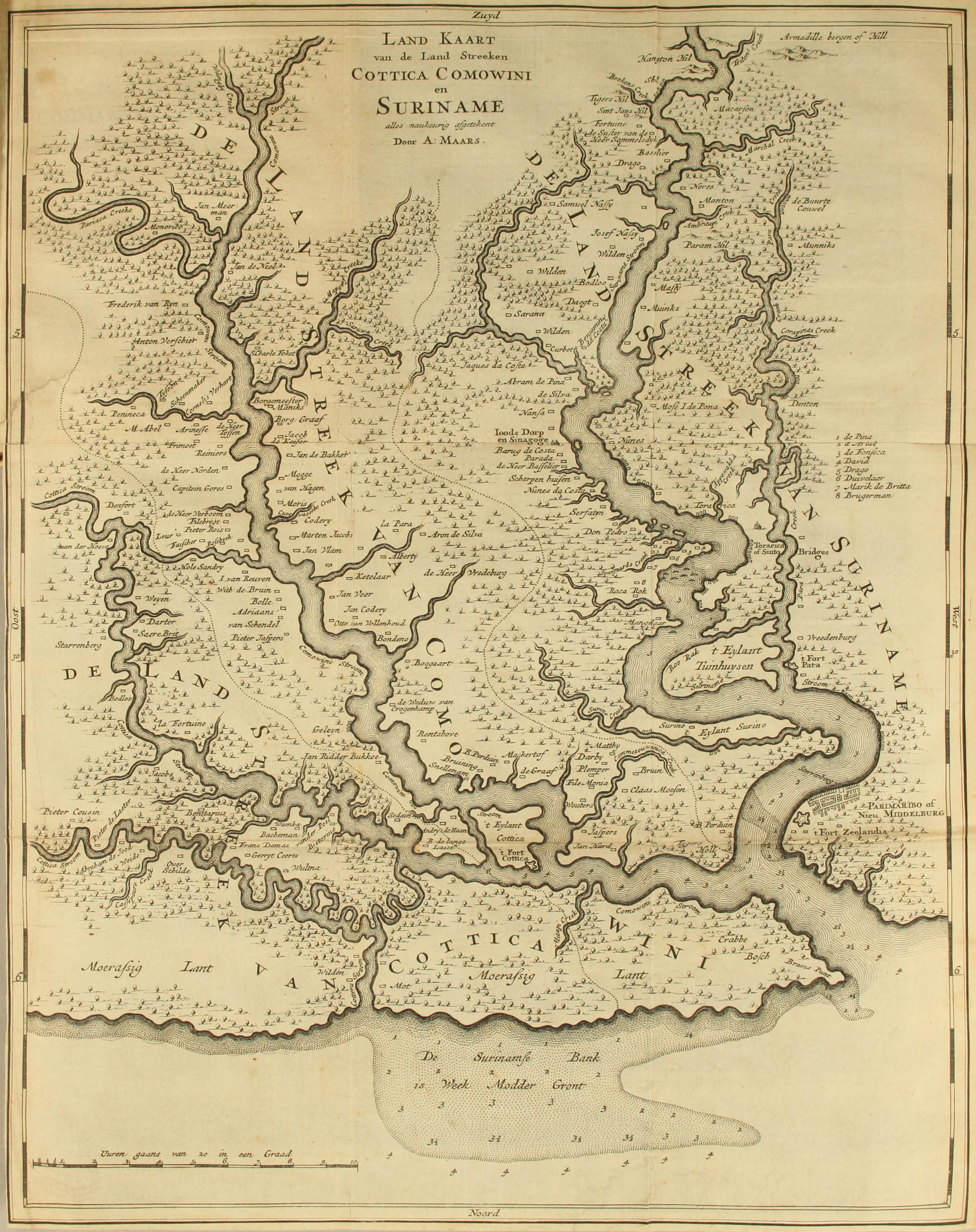 Handelende van Parimaribo of Nieuw Middelburg, ’t Fort Zelandia, Sommelsdyk, enz. als mede het Leven en Sterven van de Heer van Sommelsdyk, en de Onderneminge der Franschen op Zuriname. Pag. 46.