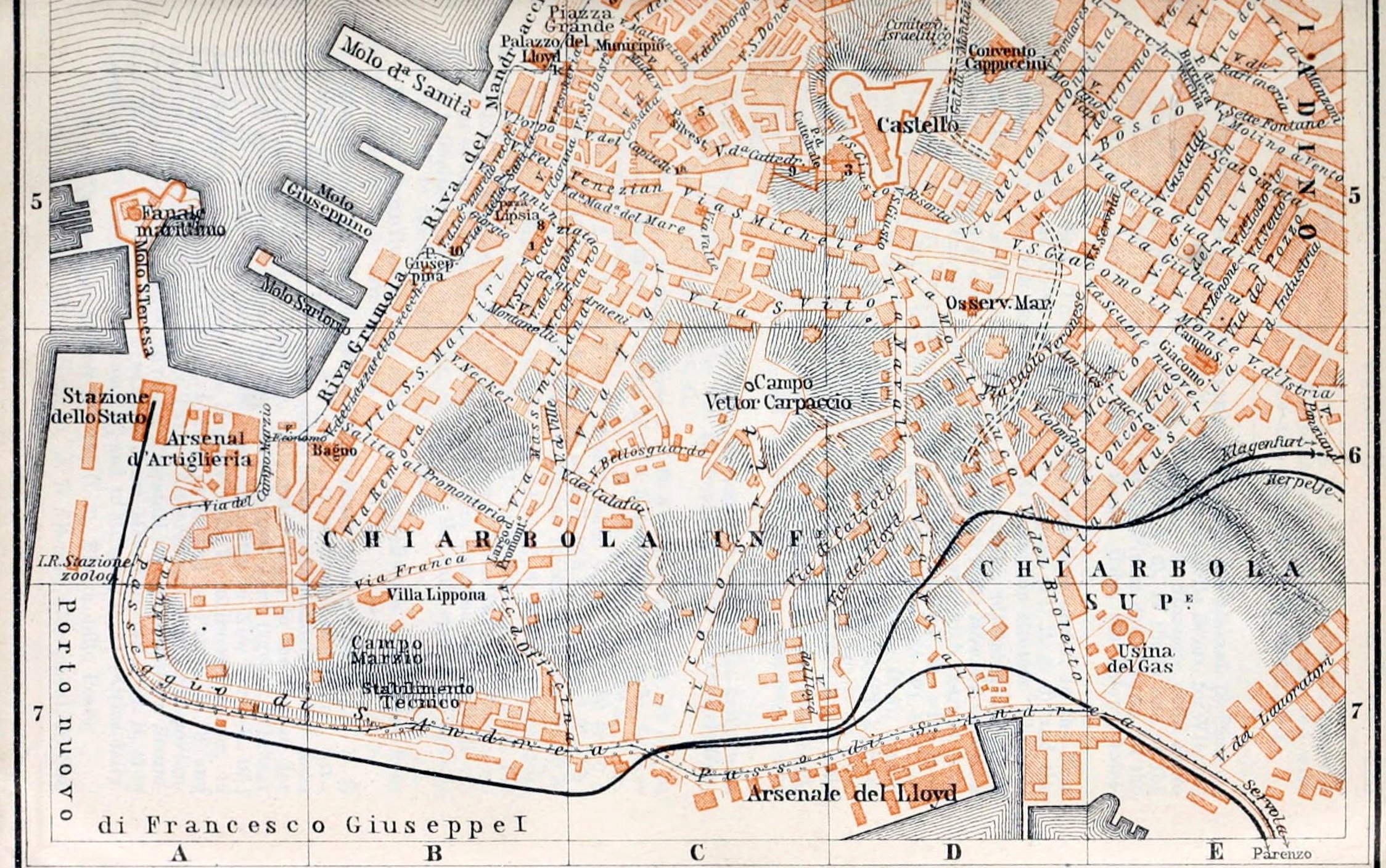 Opposite the New Mole (Pl. E, 4) is a massive Flight of Granite Steps (193 in number) ascending to the level of the town. It is adjoined by a wire-rope elevator (3 or 2 cop.).