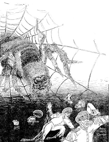 And then one man slipped! His foot flew from under him, was avidly seized by a tentacle of that slimy mass. His eyes and mouth opened wide; I knew he was screaming.