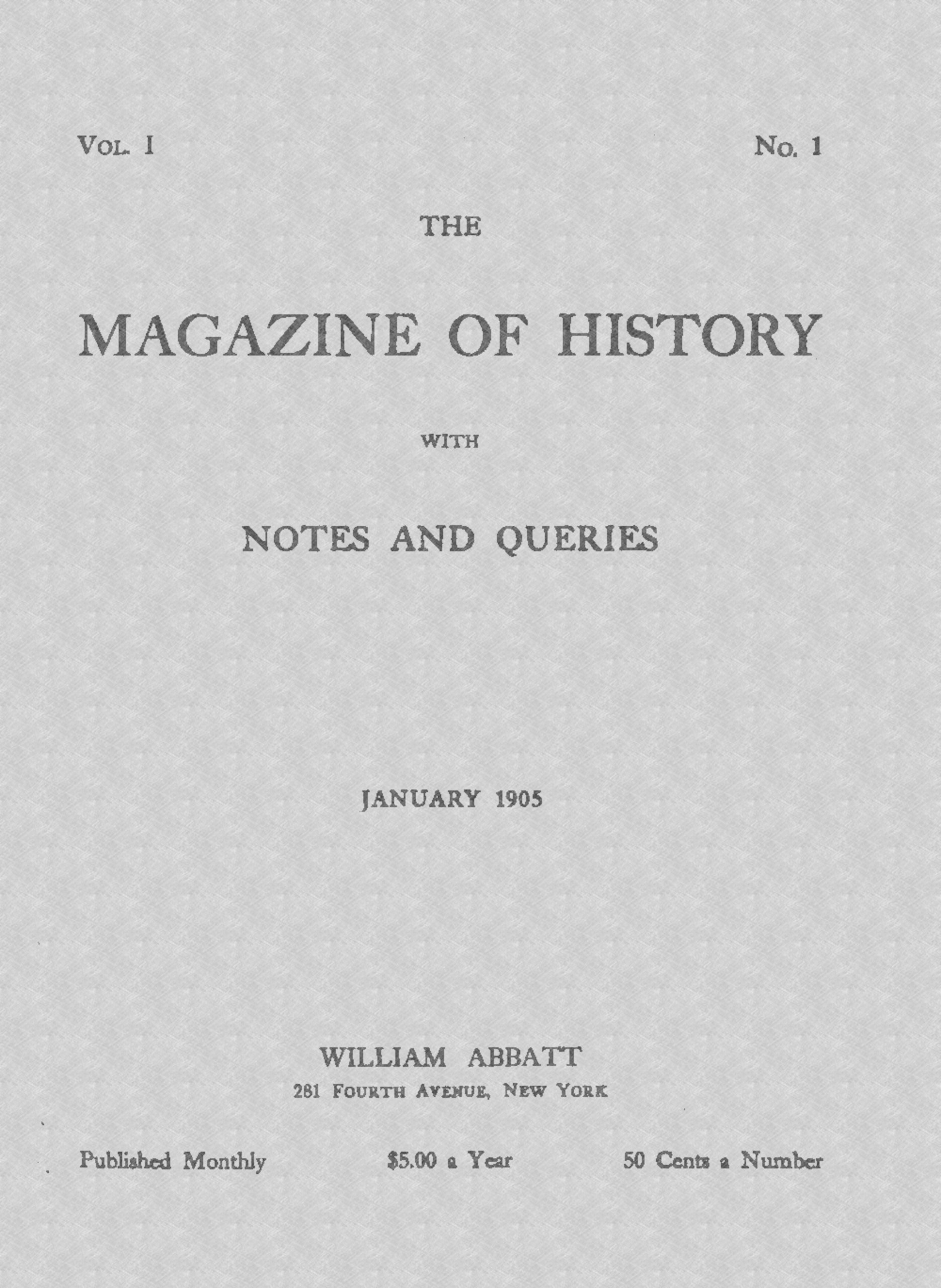 The publication of this, the first number, has been delayed by having to change printers at the last moment; but after the March number shall have appeared, it is expected to publish regularly before the 15th of each month.