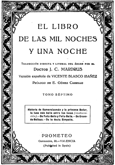 | Empieza en este tomo en la 209.ª noche y termina en la 235.ª | |