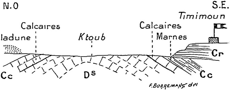 | Géologie du Tidikelt, 277. — Crétacé, 277. — Sous-sol primaire, 280. — Dj. Aberraz, 282. — Pli d’In R’ar, 284. — Sud d’In Salah, 284. | |