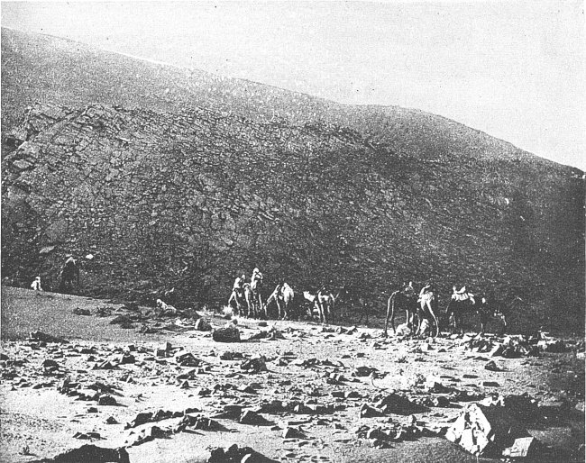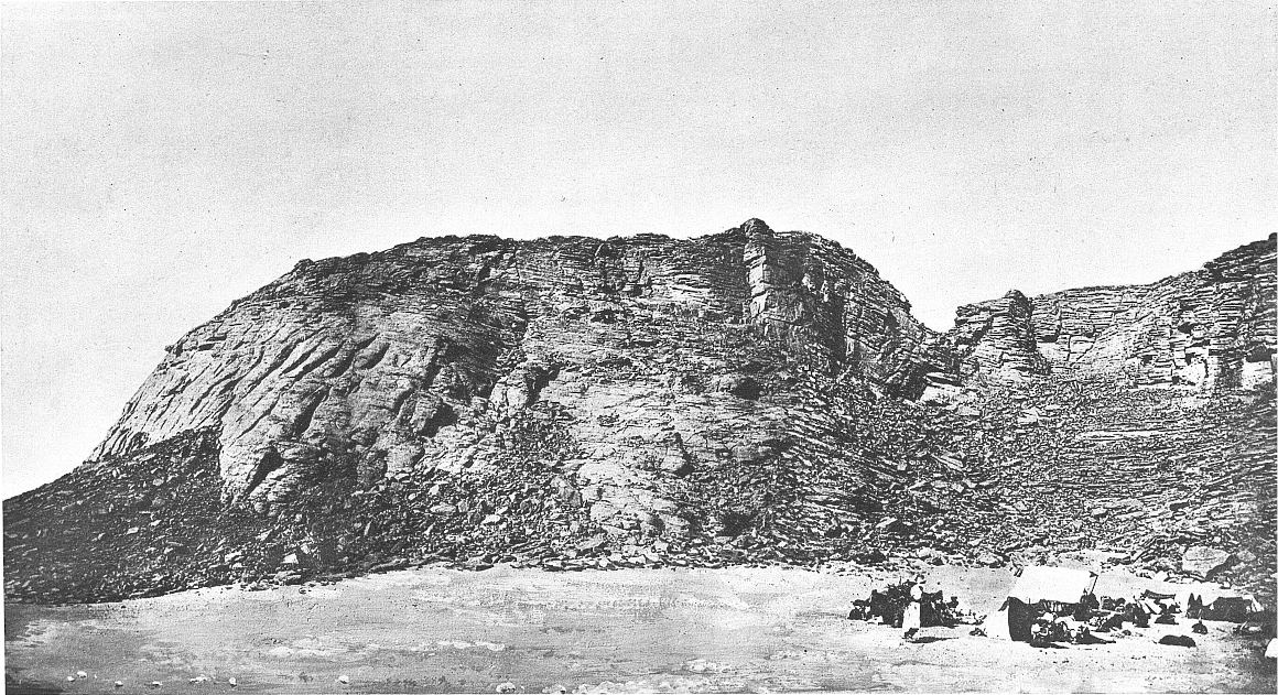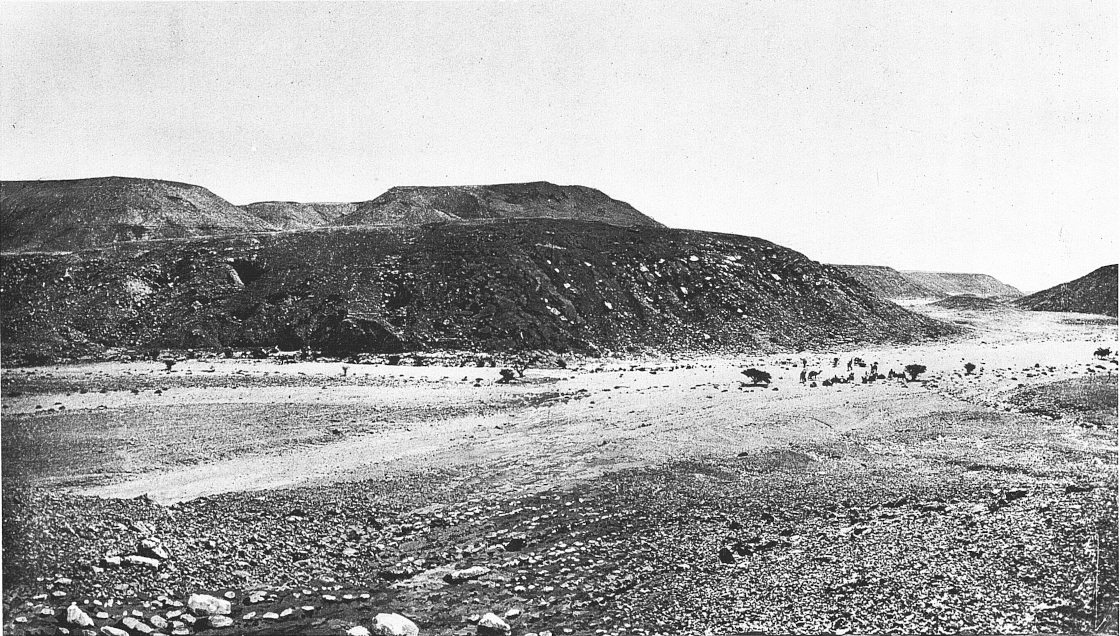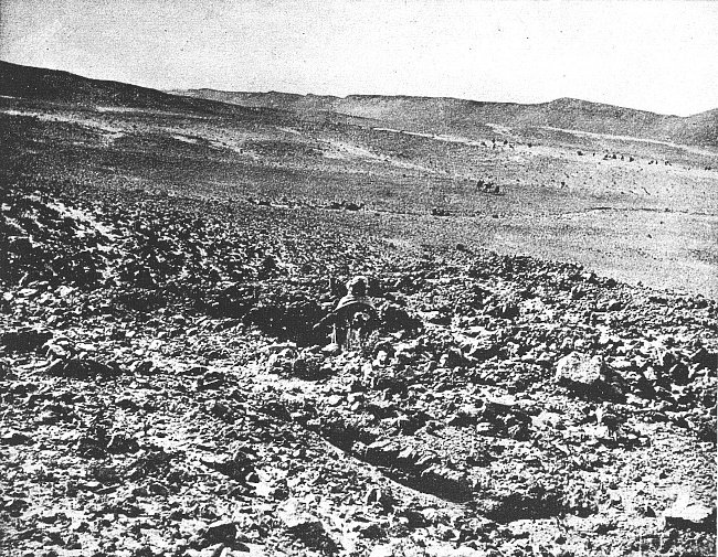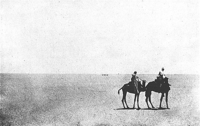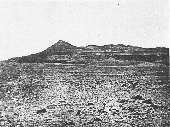 Quand on essaie d’en serrer de près le sens on s’aperçoit que le reg est avant tout une plaine rigoureusement horizontale. Tandis que le mot n’a pas pénétré dans le langage courant géographique, la chose est bien connue du grand public ; elle l’est même trop. Dans le grand public l’idée de désert évoque, à l’exclusion de toute autre[4] image, sauf peut-être celle des dunes, une grande plaine infinie parfaitement nue et plate comme la mer. Qu’on ajoute la silhouette d’un Bédouin et de son chameau, ou bien encore une fumée de bivouac, qui monte mince et rectiligne dans l’air immobile, et on a un tableau qui a été fait cent fois, et qui est dans toutes les mémoires. C’est une bonne représentation du reg. (Voir pl. I, phot. 2.)
