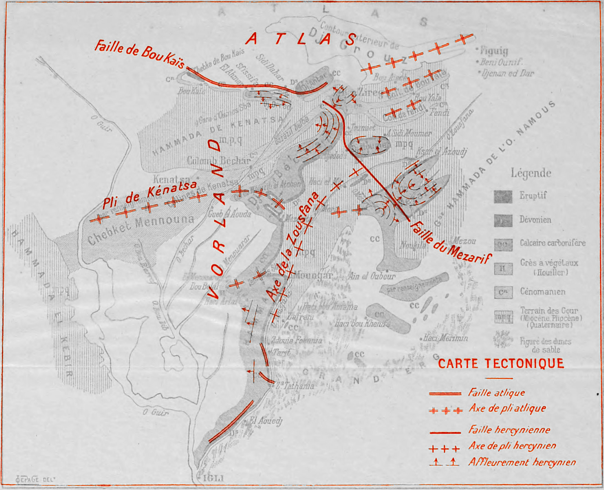 Couvert par sa haute autorité, je me suis borné ici à considérer comme acquises les données paléontologiques sur lesquelles j’ai appuyé mes études stratigraphiques ; et j’ai consacré tous mes efforts à dégager autant que possible l’architecture du pays.