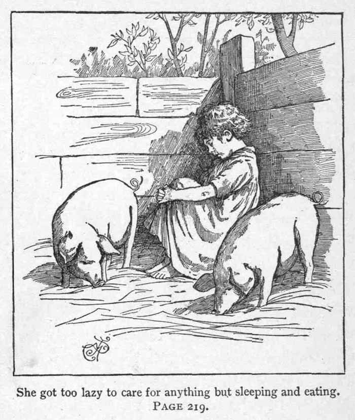 One dreadful night she found out. She was smuggled down between the great fat piggies to keep warm; but her toes were cold, and she was trying to pull the straw over them when she heard Mr. Gleason say to his boy,—