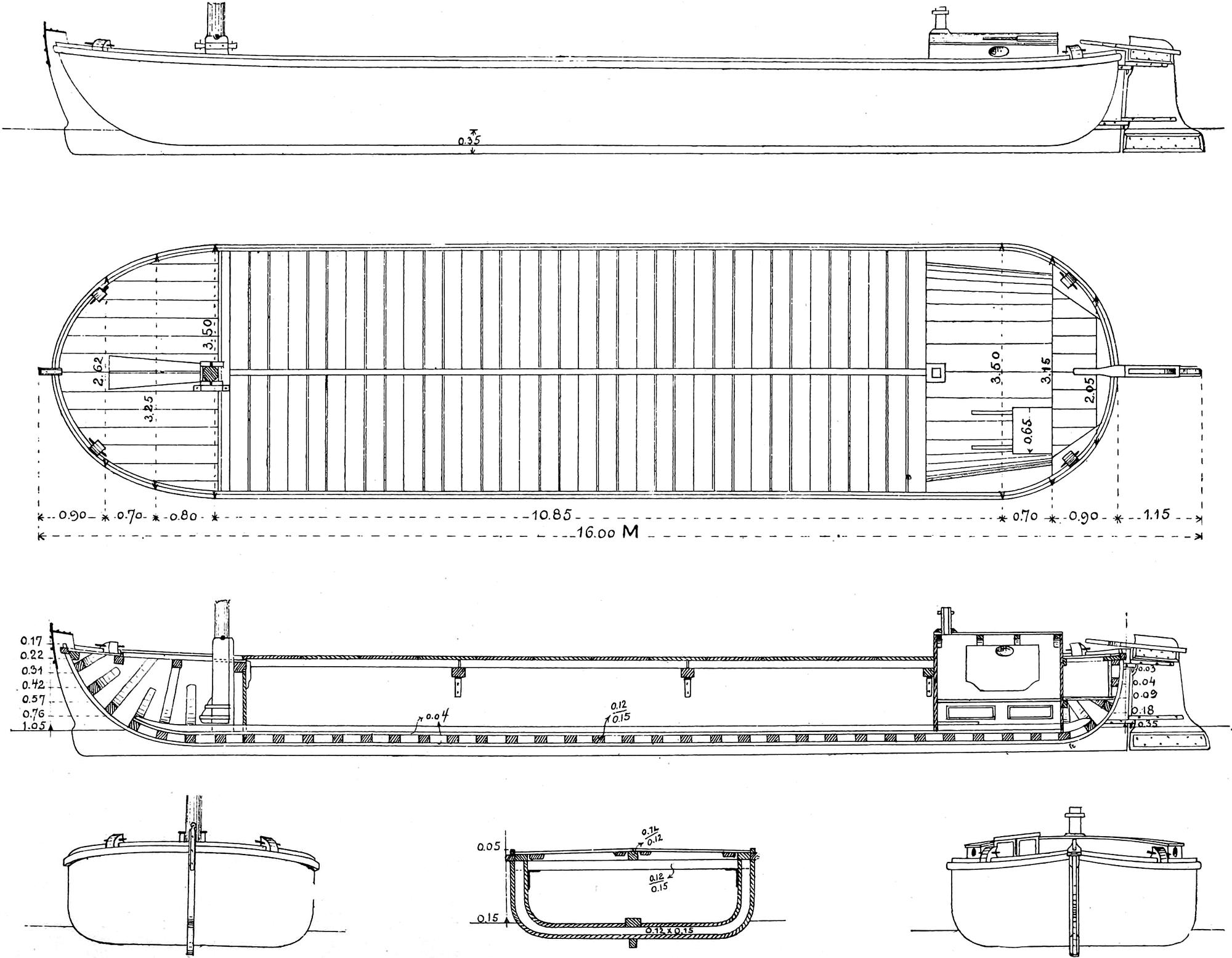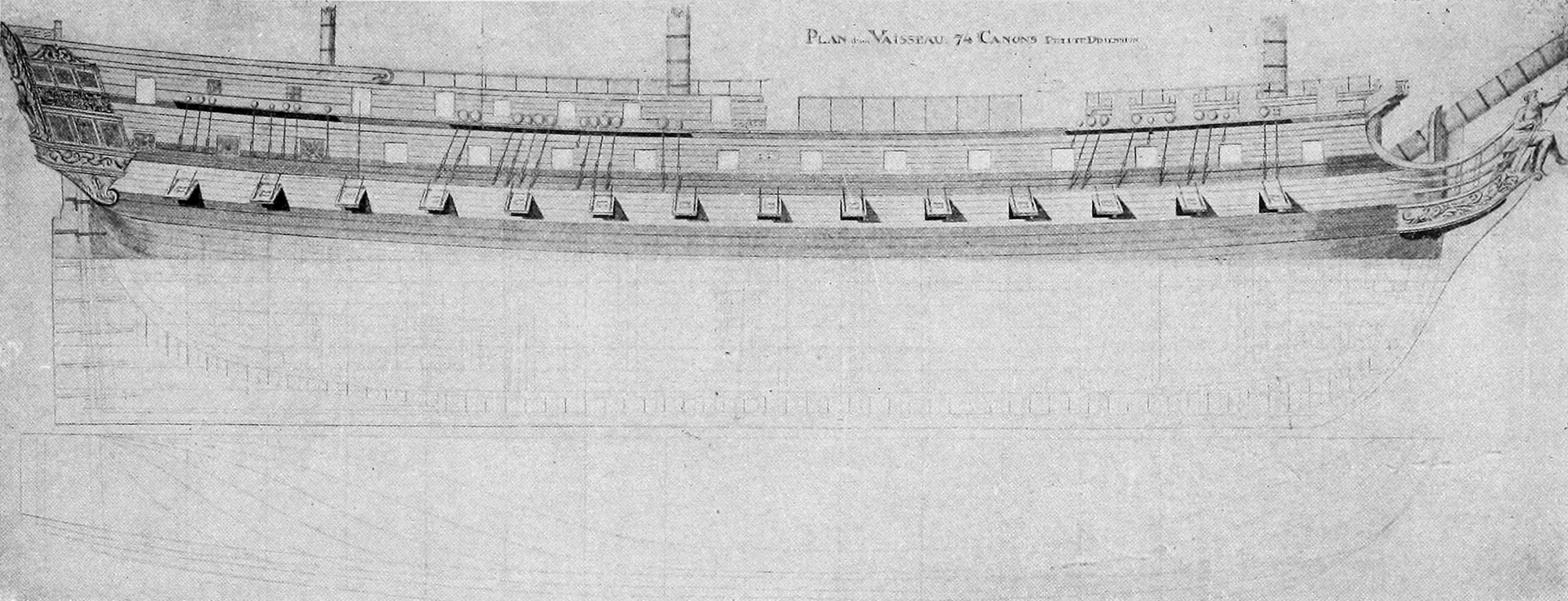 LE PLACEMENT DES FOURCHES DESTINÉES A FIXER LE CABLE QUI DOIT EMPÊCHER LA FLEXION LONGITUDINALE DU BATEAU.