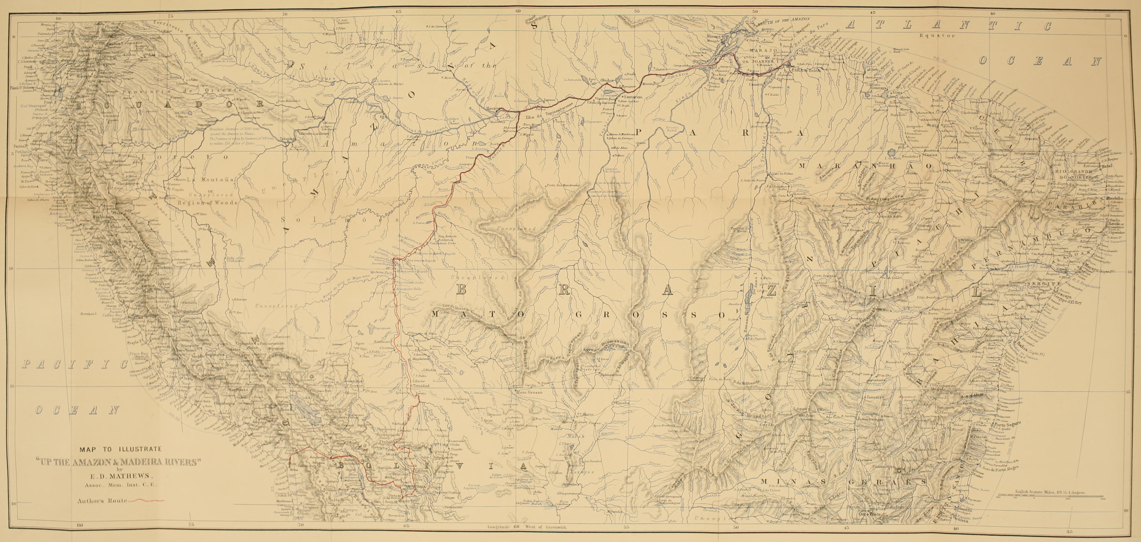 MAP TO ILLUSTRATE “UP THE AMAZON & MADEIRA RIVERS”