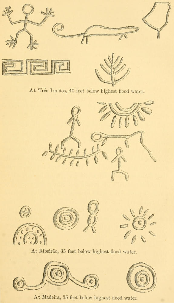 | The rapid of Araras—Farinha and sardines for supper—Difficulty of treating the Indians successfully when they are sick—The current of Periquitos—Arrival at the Rabo do Ribeirão—The Bolivian Indian’s chaunt at night—Passage of the Rabo do Ribeirão—Quantity of farinha consumed by boatmen, in the form of “shebee”—Canoe aground in the bay below the main fall of Ribeirão—The river Ribeirão—The portage of Ribeirão—Curious marks on rocks | 69 |