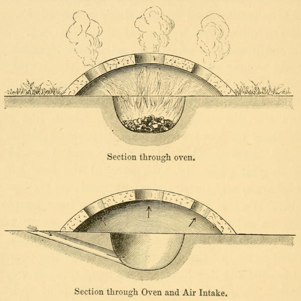 The next day was a wretched lost one. On waking at 5 a.m., I took my accustomed dose of[359] quinine, and, dressing leisurely, went out to the corral, expecting to find the boys saddling the mules; but neither mules nor mozos were visible, and the unpleasant fact forced itself on my unwilling belief that the mules had bolted during the night, and that the mule-boys were after them on foot. This was confirmed, in mixed Aymará and Spanish, by the old woman of the house to which the corral was attached. About seven o’clock, Marco returned with five of them, the other four having apparently taken the direction of La Barca. Juan had gone after these on foot; so, having dispatched Marco on one of the animals, all Alfredo and I could do was to wait patiently, take care of the four left in our charge, and nurse our discontents as well as we could. We had bought a small sheep for a couple of pesos on arriving at Llollia last night, so we made ourselves a breakfast of roast mutton, which we toasted in one of the ground fireplaces of the country, and waited the day out. These fireplaces are worthy of note. A hole is dug in the ground about eighteen inches in depth and two feet in diameter, and over this a framework of clay is made, with holes of different sizes, to receive the various cooking-pots. Roasting must be done on spits passed through the holes; so the meat comes out very much smoked, unless great care is taken to have only embers in the bottom of the oven. For rough cooking, the affair answers its purpose well, and one would be inclined to think that a good idea for camp ovens might be taken from it, if a curved sheet of cast or wrought iron were used instead of the clay frame, as good clay would in many places be difficult, perhaps impossible,[360] to obtain, and would take too long to manufacture. The plan of digging a hole in the ground for a camp oven is, of course, not a new one; but it would seem that the curved top would be much simpler and lighter for transport than the camp ovens that are in general use.