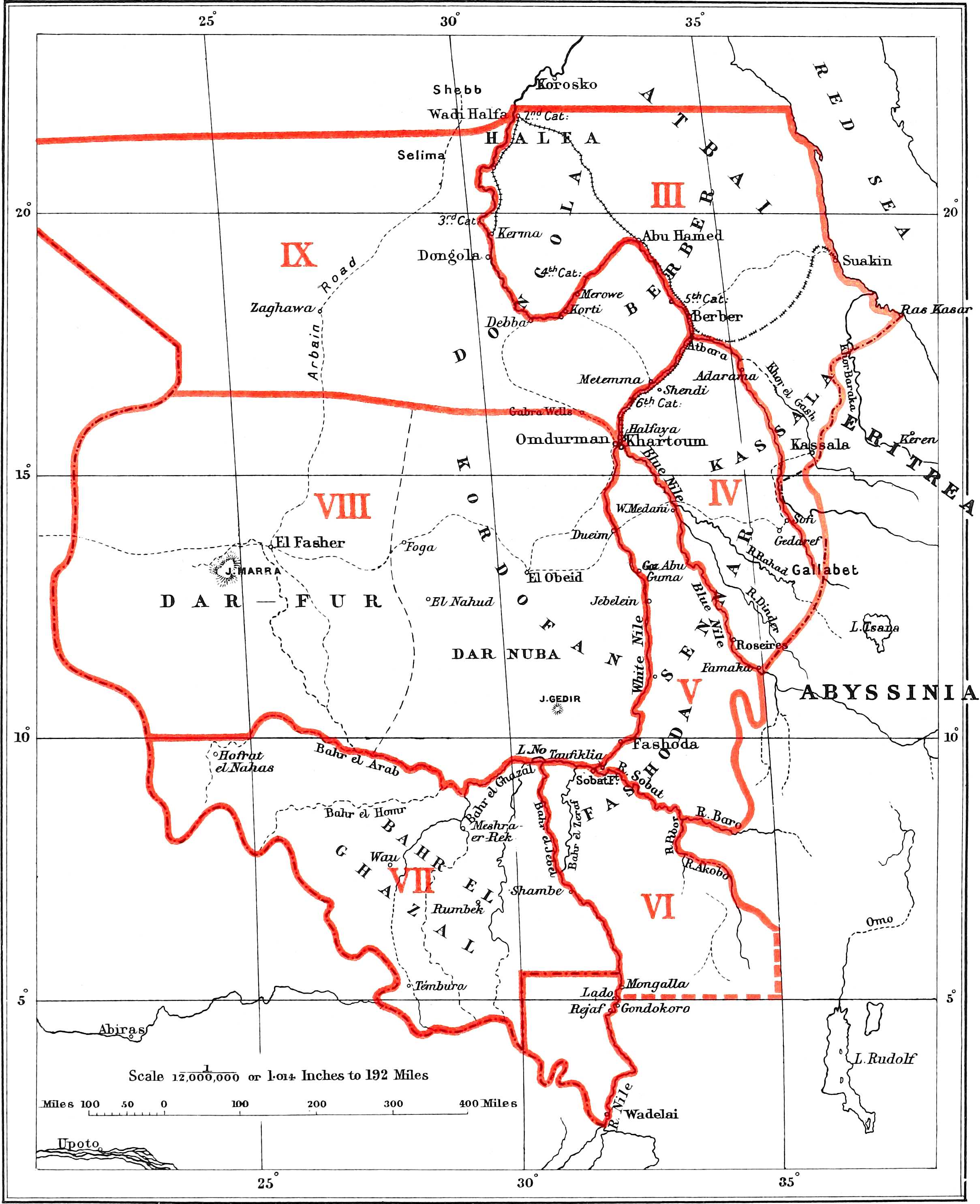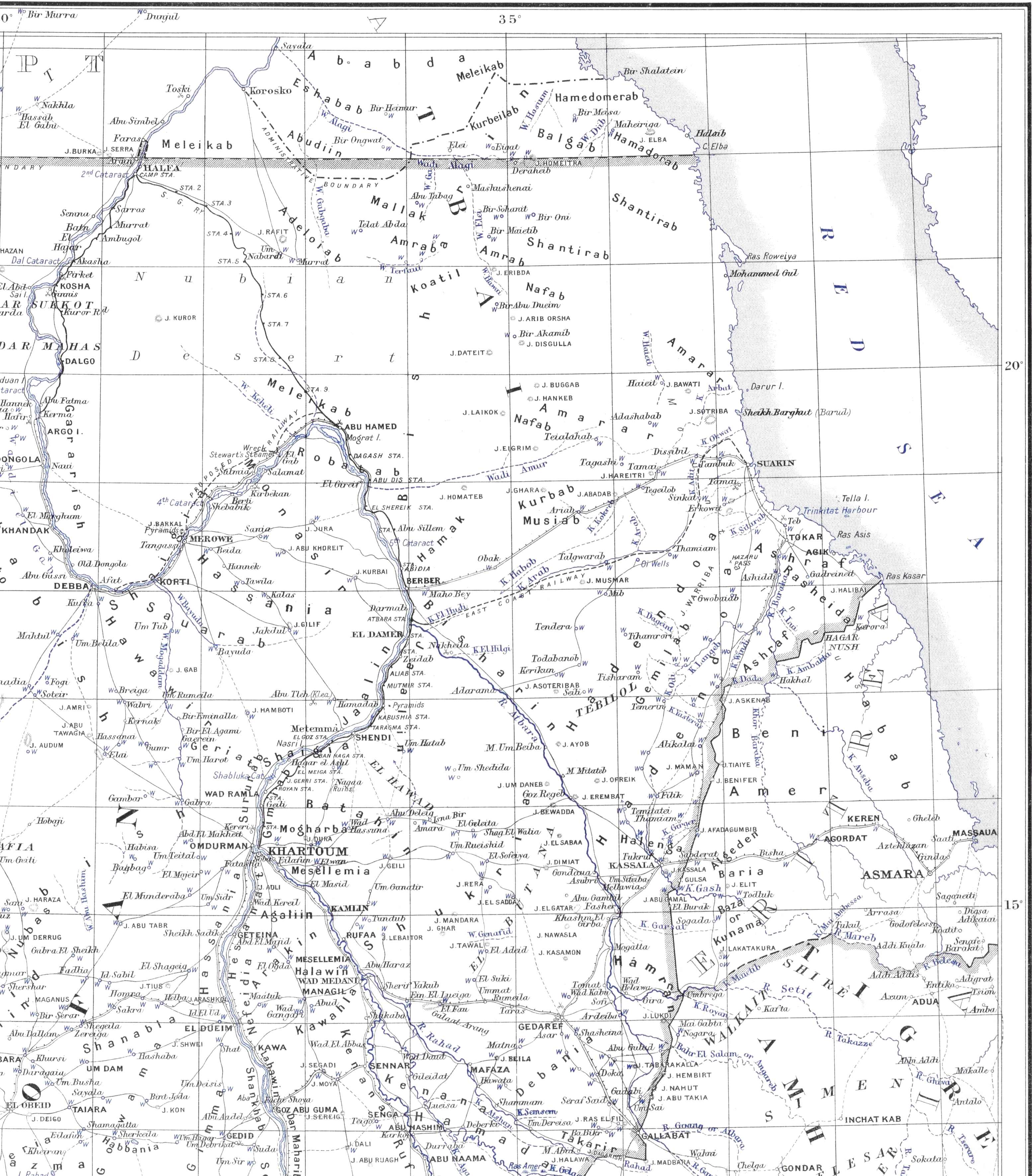 | (Country bounded on the north by the Sudan-Egyptian frontier, on the west by the Nile from that frontier to the mouth of the Atbara, on the south by the Atbara and Abyssinian and Eritrean frontiers, and on the east by the Red Sea.) | ||||