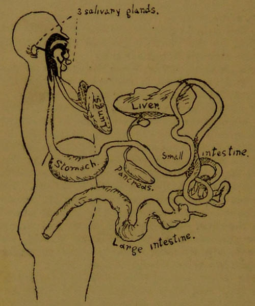Roughly speaking, these principles are contained in ¾ pound of ordinary butcher’s meat and 2 pounds of bread; but it would be well to defer considering diet for the present, until we have examined the apparatus by which the body extracts what it wants from the raw materials, and which of these offer it the least resistance.