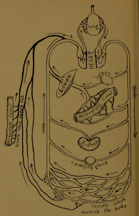 My object throughout this little work has therefore been to present the fundamental principles of physiology in a brief, consecutive and readable form, for those who do not care to study the text-books. There is no lack of excellent books already, books illustrated by careful[vi] drawings quite gruesome in their accuracy, but they are almost all intended for “students,” and the casual reader, finding the organs divided up for exhaustive treatment, fails to form a conception of the body as an organic whole, and misses the very principles he is in search of, in the heap of details under which they are buried.