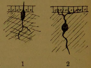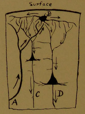 A, Afferent fibre; B, distributing cell; C, small pyramidal cell; D, large pyramidal cell.