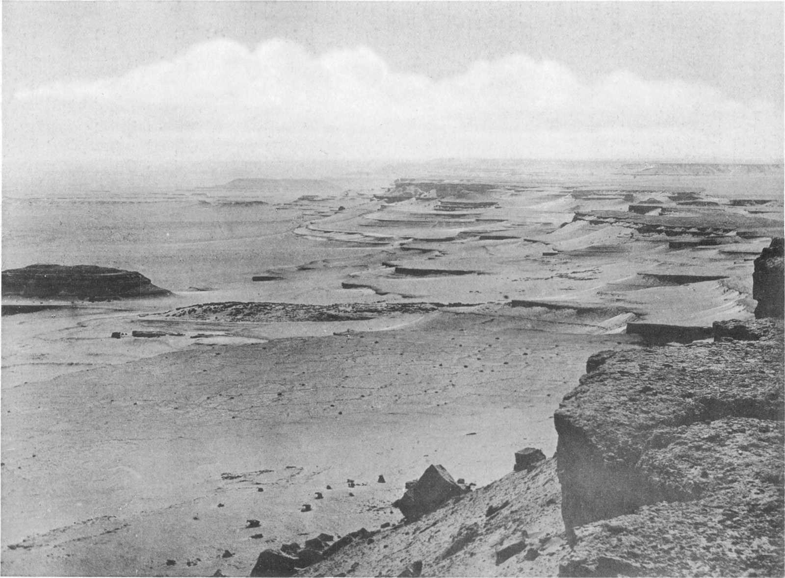 The geological survey of the desert surrounding the Fayûm was commenced in October 1898. At that time the area, although so near to Cairo, was little known; the Rohlfs Expedition maps marked the region as “unexplored,” and in fact with the exception of a publication by Schweinfurth, who had traversed the region from north to south, via Qasr el Sagha and Gar el Gehannem to Rayan, there was little information obtainable. The area being of considerable size (12,000 sq. kilom.) and almost unexplored, both geologically and topographically, the primary object was to construct as rapidly as possible a general map of the depression, at the same time laying down in broad outline the chief geological formations and trusting to future opportunity to examine in more detail places of special interest.