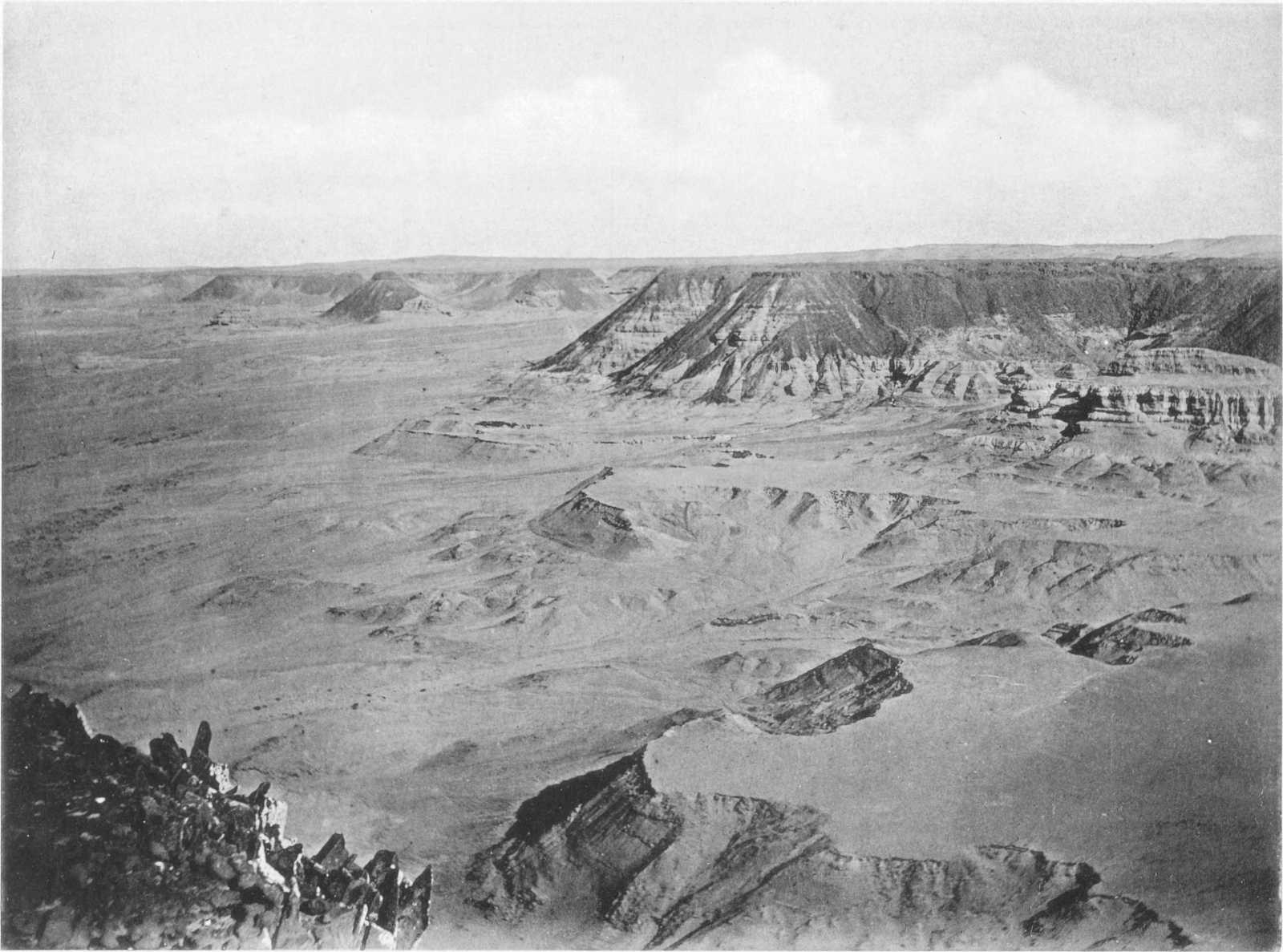 | IX. — | Upper beds of Fluvio-marine series with basalt cap, looking west from the eastern extremity of Jebel el Qatrani | „ | 53 |