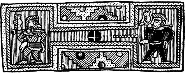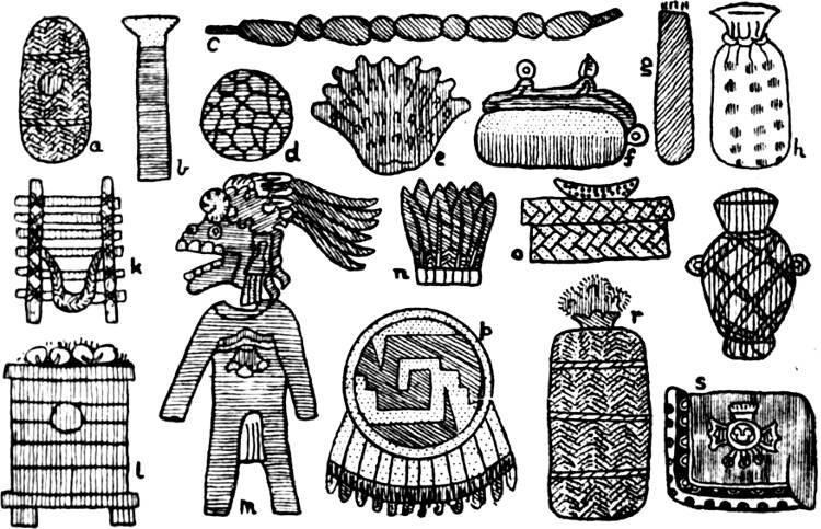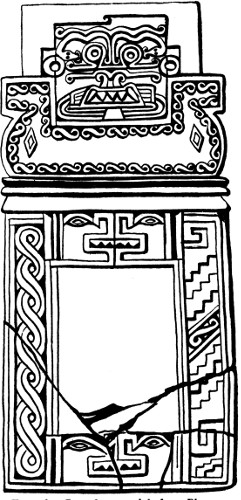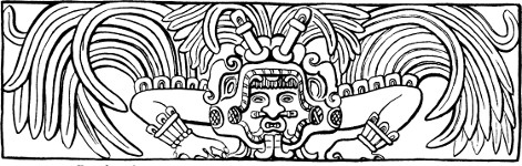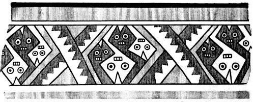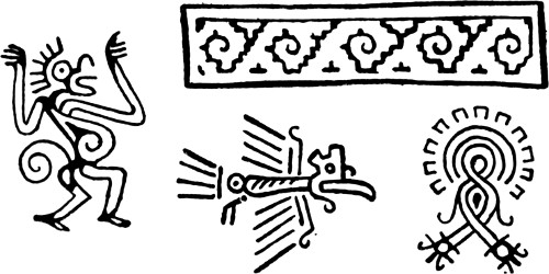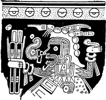 The position which must be assigned to the Zapotec raises a question of considerable interest. Their indebtedness to Maya culture is obvious from the consideration of a large proportion of their architectural remains and their art, but certain peculiar features make their appearance. In the first place, no migration legends are recorded, while the fact that certain localities were held to be the entrance to the underworld rather emphasizes the “indigenous” nature of the population. Again, though cremation makes its appearance among the later Maya, the Zapotec, for religious reasons, held out against it, practising, in the main, secondary burial. Finally, certain forms of ornament applied to architecture (as at Mitla) and to pottery (as at Cuicatlan) are unique in this part of America. Of interest is the fact that the geometric ornament at Mitla finds an exact parallel in the stucco decoration of some of the early ruins of the Peruvian coast, while the designs of the Cuicatlan pottery reproduce with equal exactness a favourite textile ornament belonging to the same region. Certain of the Peruvian coast-dwellers preserved traditions of immigration by sea, and these combined facts might be taken as a vague indication of early coasting-voyages down the west coast of America. It would be rash to put this forward as a definite theory, but at any rate further investigations in this direction might prove of great interest. The Zapotec at one period seem to have extended considerably further north than in later times, and to have been driven south by the Mixtec who at least contained an immigrant element. The peculiar slab discovered at Placeres del Oro seems to[370] bear some affinity with Zapotec reliefs, but here again the “Peruvian” character of the decoration is paramount. Affinities with Peruvian archæology extend into Michoacan, where the practice of providing the mummy-pack of the dead with a false head prevailed, and similarities with Peruvian beliefs may be seen in the Mexican custom of providing the deceased with a dog to convey his soul to the underworld, and in ill-treating dogs during eclipses of the moon. Resemblances also exist between the Peruvian and Maya cultures; certain stone reliefs showing a figure seated in a niche have been found at Manabi in Ecuador (where again traditions of immigration by sea survive), which look very like travesties of some of the Piedras Negras stelæ; while the famous monolith discovered at Chavin de Huantar in the Andes bears a very distinct “Maya” stamp, though it is related also to the art of the Nasca valley. But great caution is necessary in dealing with similarities of this nature, which may arise from no more than a common psychology, and may bear witness only to the “American” basis shared by both cultures.