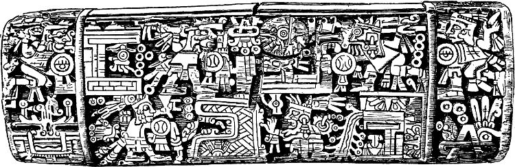 [5] The very early dates which occur at Palenque, a late site, must be themselves artificial or mythical, and so too, I believe, are the dates which occur on the celebrated Leiden plate and Tuxtla figure.