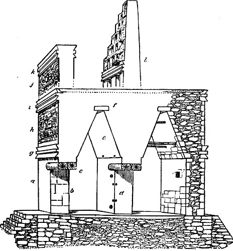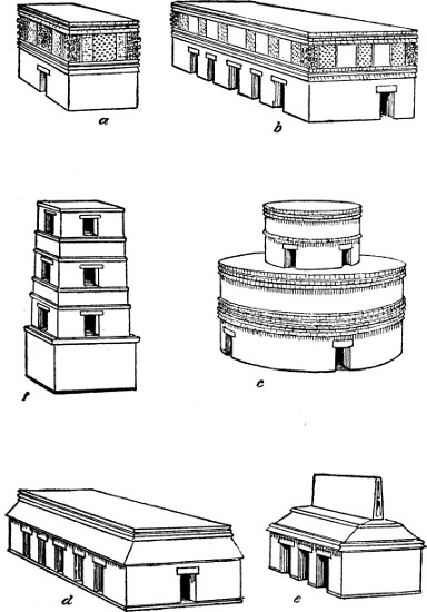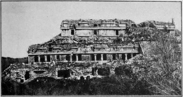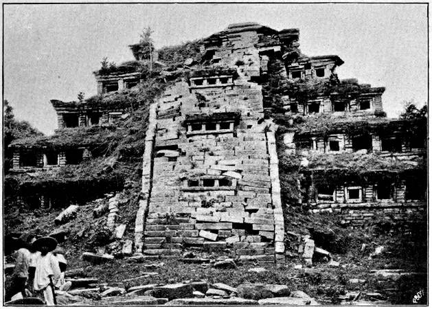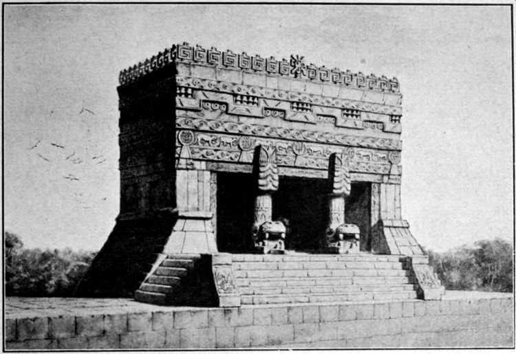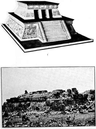 1. Restoration of the ball-court temple at Chichen Itza, Yucatan; after Maudslay. (See Plate XXVIII)
