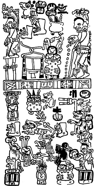 [7] There is a wall-painting at Chichen Itza which seems to picture a human sacrifice, but this is on a building which undoubtedly belongs to a later period, when the Maya had already come in contact with Mexican influences, as will be seen later.