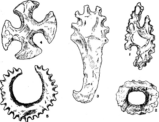 Fig. 86.—Details from various monuments showing the interlaced head-ornament.