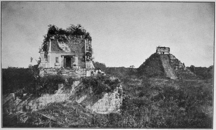 The temple of the ball-court (left) and the “Castillo,” at Chichen Itza, Yucatan. (See Plate XXIX, 1)